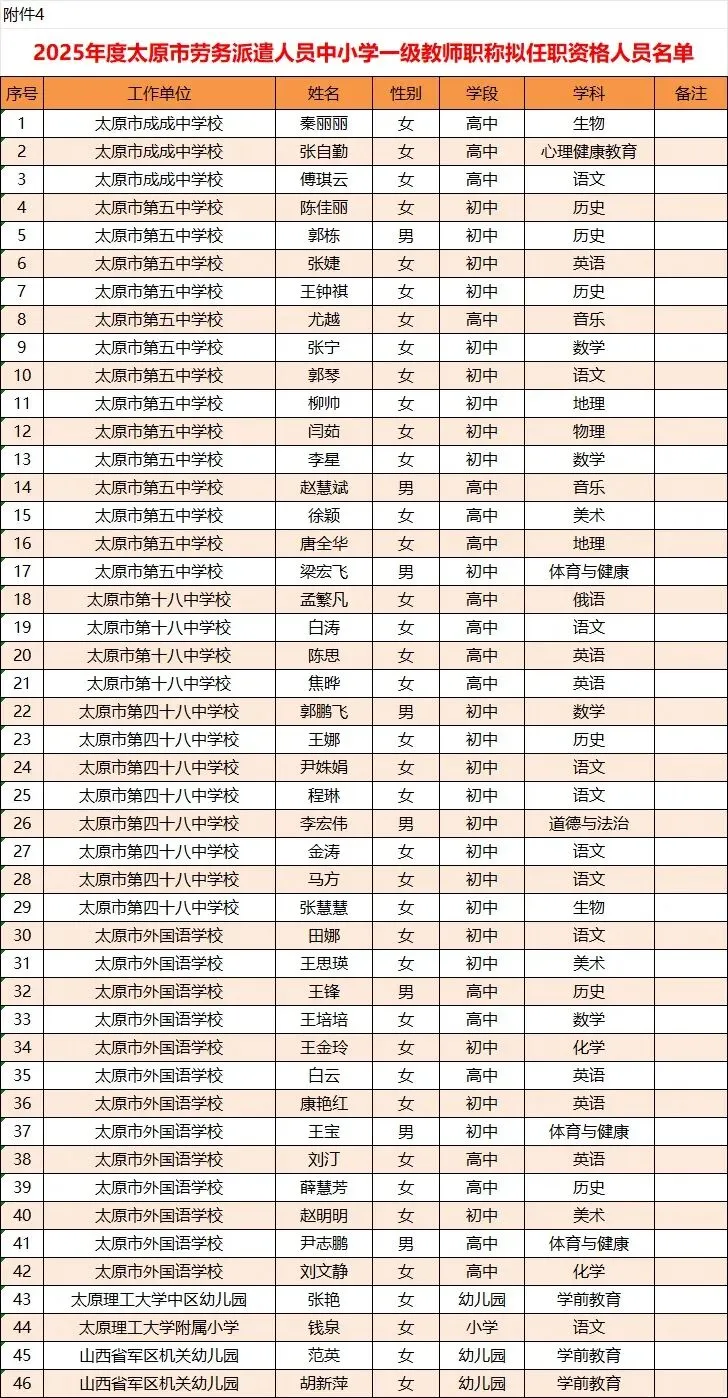 4.2025年度太原市劳务派遣人员中小学一级教师职称拟任职资格人员名单