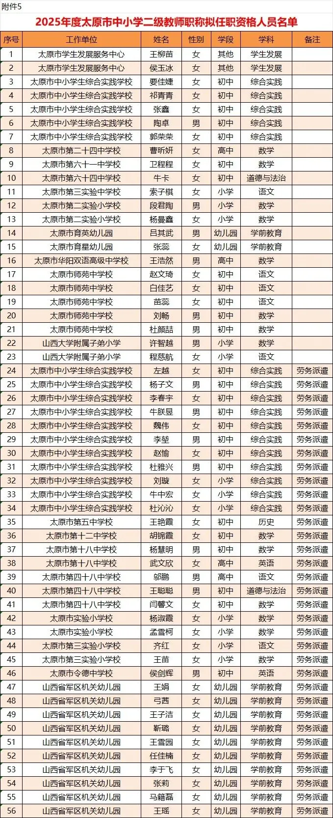 5.2025年度太原市中小学二级教师职称拟任职资格人员名单