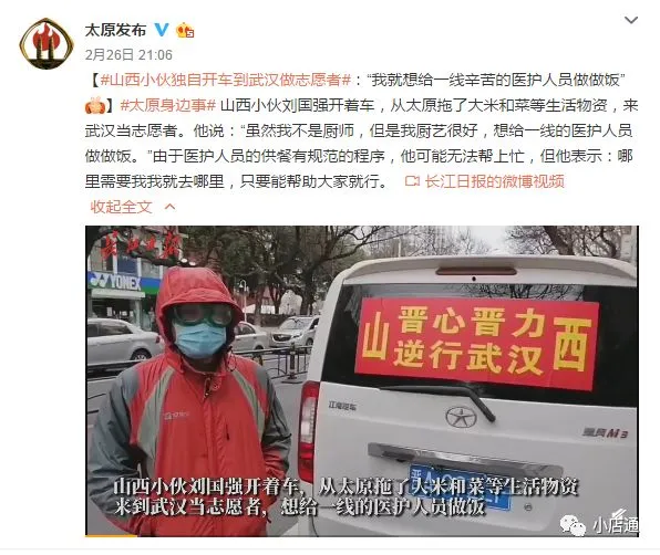 他们当中,不少人都是有家庭有子女的,但是在国难面前,这些丝毫没有影响到他们前往一线的决心。在他们眼里,国家和人民更为重要,战胜疫情是他们的使命。同时,此次出征的救援队中还有由生化检验车、水电一体车、生活保障车、宿营车组成的“方舱车队”,2月4日下午就先期出发了。太原女子孤身自驾千里赴武汉!“国家有难,匹夫有责!”85后,出生医学世家。她带来自筹的捐赠物资,并希望能留下来做一名志愿者。