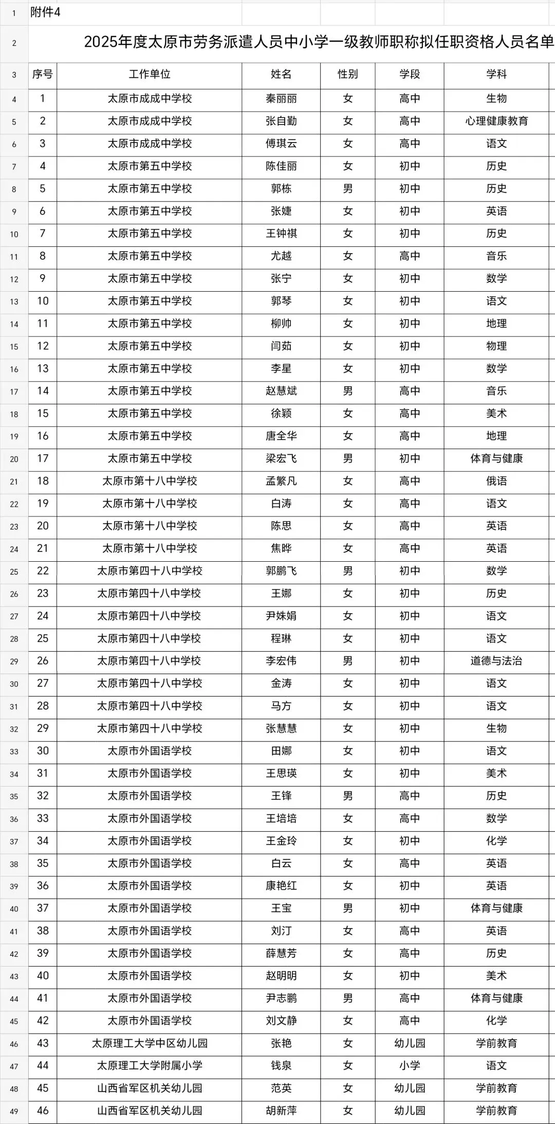 1.2025年度太原市中小学高级教师职称拟任职资格人员名单