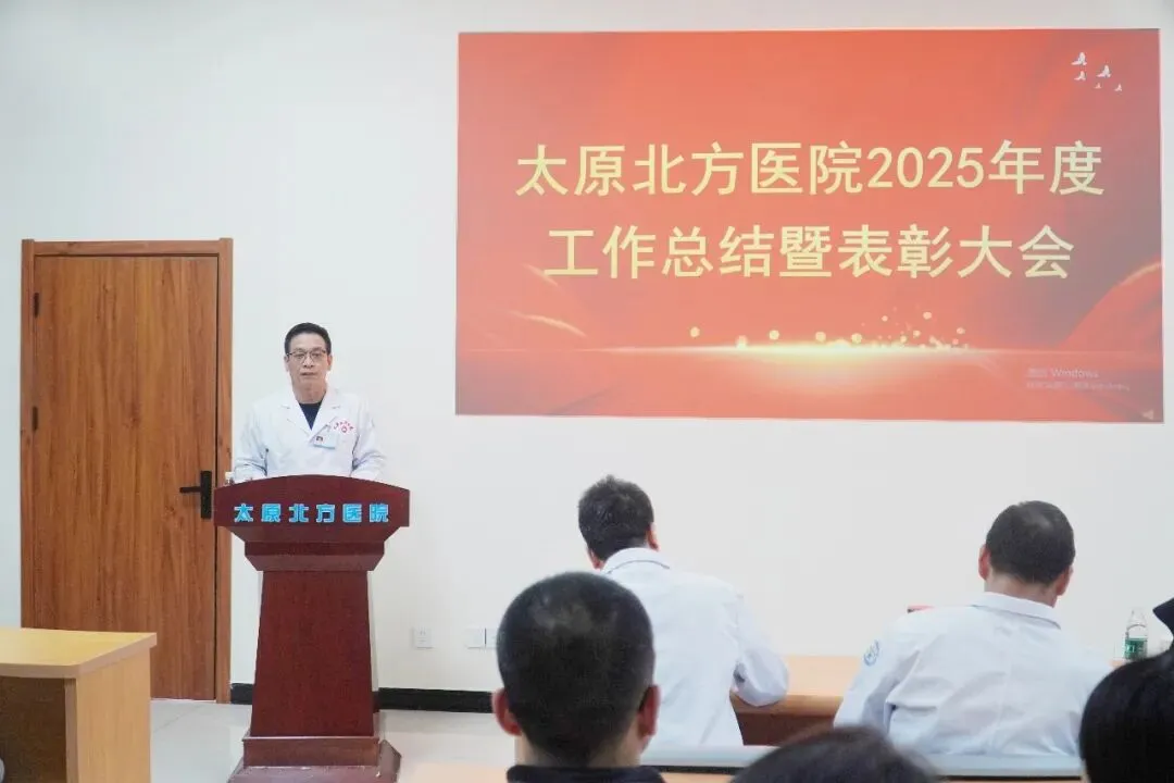 院长郭旭光代表医院领导班子作了题为《站在新起点 展现新作为 全力绘就太原北方医院发展新蓝图》的2025年度工作总结暨2026年重点工作计划报告。