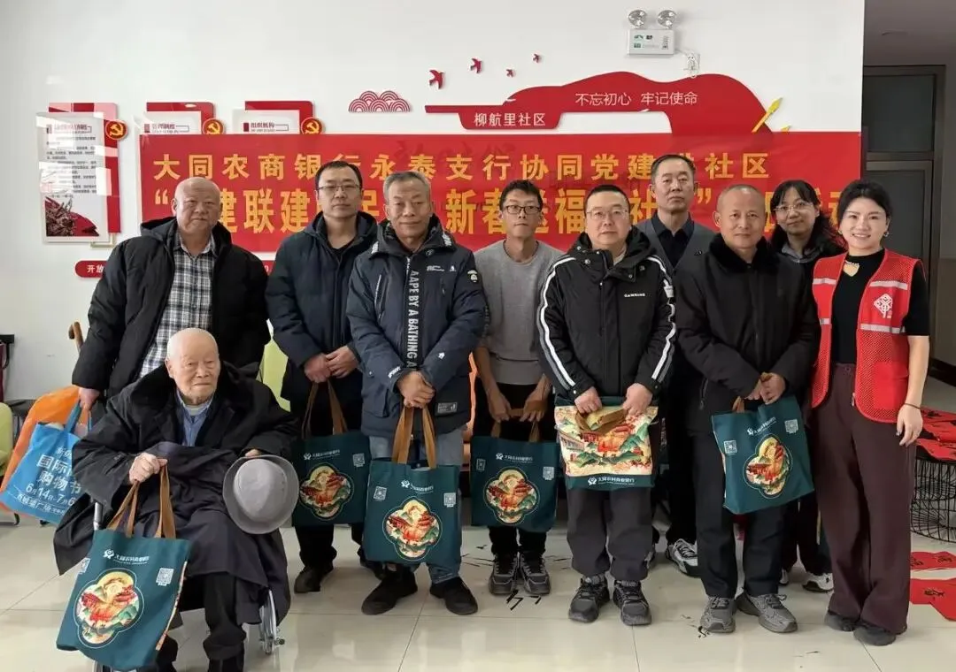 在新春佳节即将来临之际,大同农商银行永泰支行党支部携手大同市平城区永泰街道柳航里社区党支部,共同举办了“党建联建暖民心 新春送福进社区”党日活动。活动通过签署联建协议、文化迎新、实地探访、走访慰问等多种形式,将党组织的温暖关怀与节日祝福送到社区群众心坎上。