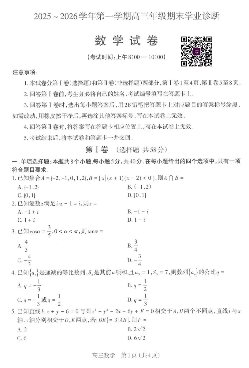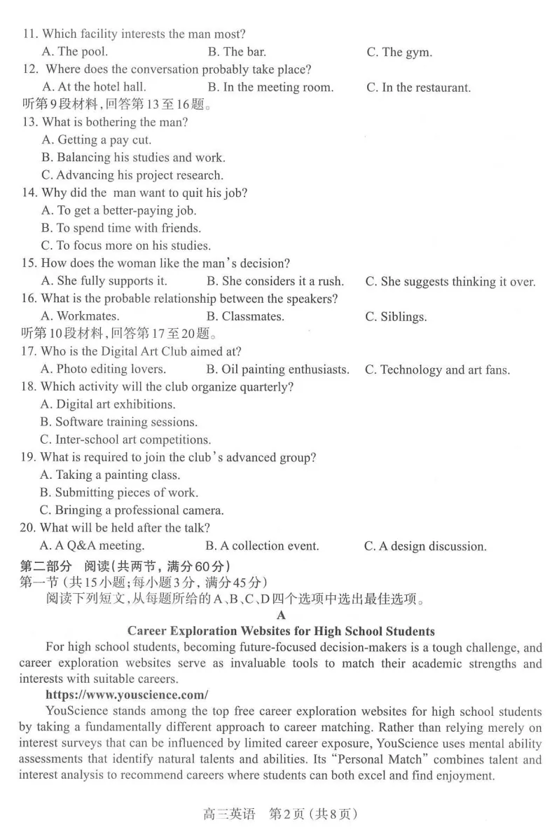 回复“高考一模、高考二模、高考三模、省适应考”,获取对应试题资料
