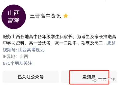 1、点击关注“三晋高中资讯”公众号