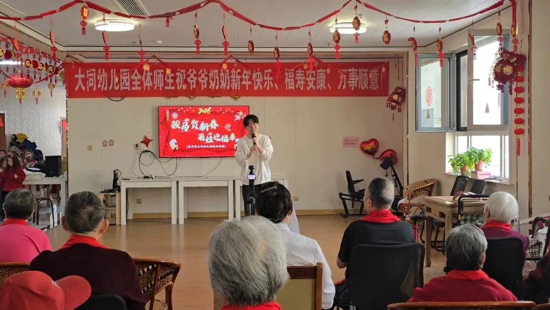 活动现场暖意融融,年味十足。大同幼儿园张园长首先代表全体师幼向爷爷奶奶们送上新春祝福,字字句句饱含着对长辈的敬重与关怀;大同网格党总支书记蔡建华的新春寄语,更是让老人们感受到了来自社会的温暖与牵挂。
