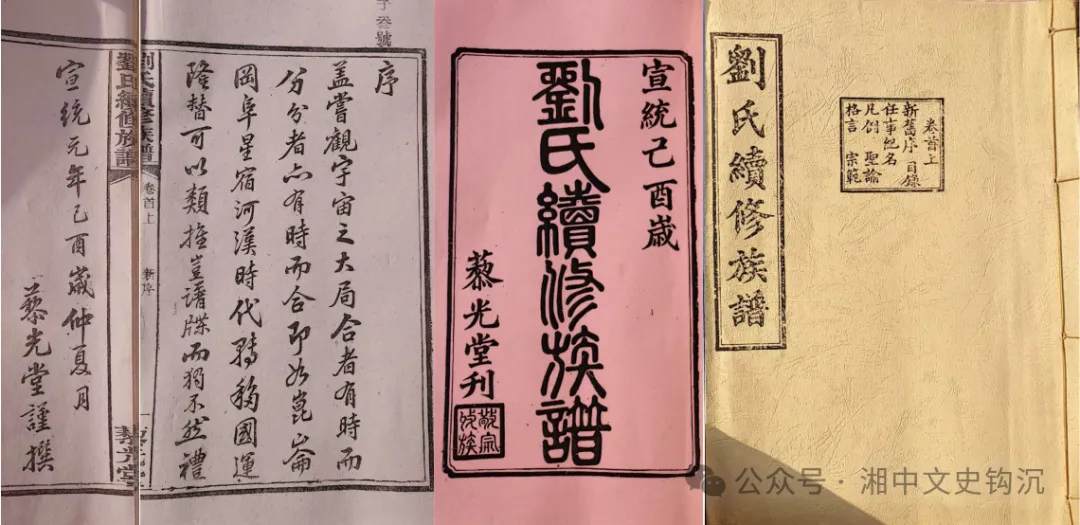 所阅刘氏续修族谱修于宣统元年己酉岁,藜光堂刊,即知止园刘氏第六房天柱公之子银汉公支裔。该谱一修于乾隆四十三年,中间纂有墨册,宣统元年己酉才完成二修。谱载:天柱公由漩塘池子桥上迁腰鼓,银汉公迁四十二都七甲。银汉生延凤,延凤生文道,文道生景江,景江长子应珍,开七甲、陡山、湖洞、洪山殿;应珍次子添富开陡山、湖洞、洪山殿。光绪五年己卯岁(1879)冬至奉祖,广才敦臣公倡议建祠,至七年辛巳(1881)告成。念及族谱未修已久,虽有墨册,但因缺资未镌,乃于光绪九年癸未(1883)冬至共议修谱。但直到光绪三十四年戊申(1908)仲春始起事,宣统元年己酉(1909)仲夏告成。班序为: