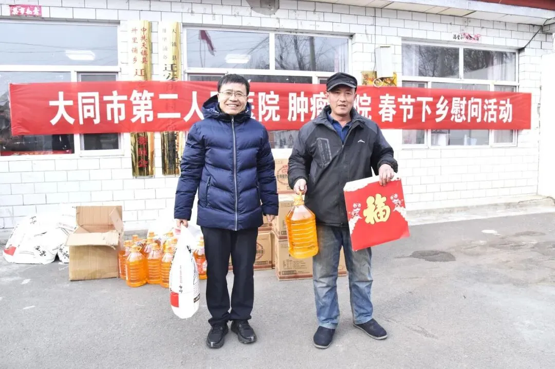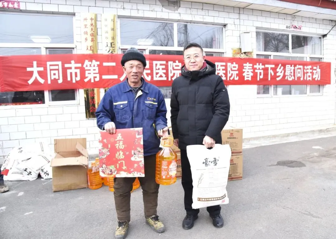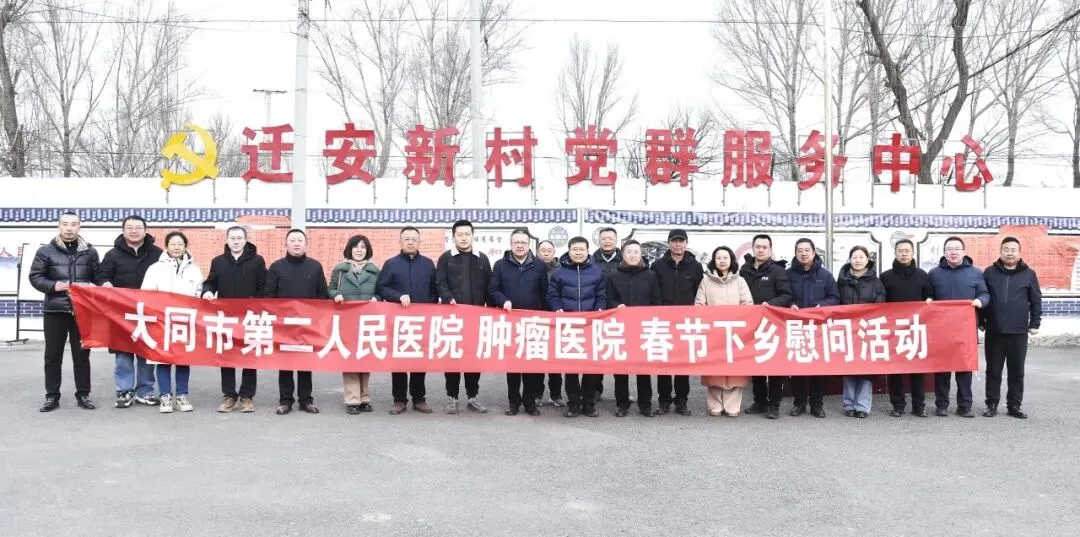 寒意虽浓,温情愈暖。2026年2月6日,大同市第二人民医院党委书记杨波、院长闻庆带领院领导班子及各支部书记一行,奔赴定点帮扶村——天镇县卅里铺乡迁安新村,开展“迎春节、送温暖”慰问活动,为乡亲们送去新春祝福与深切关怀。