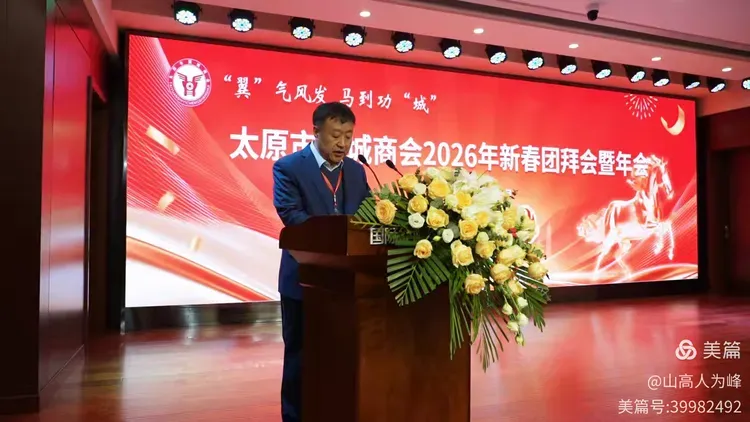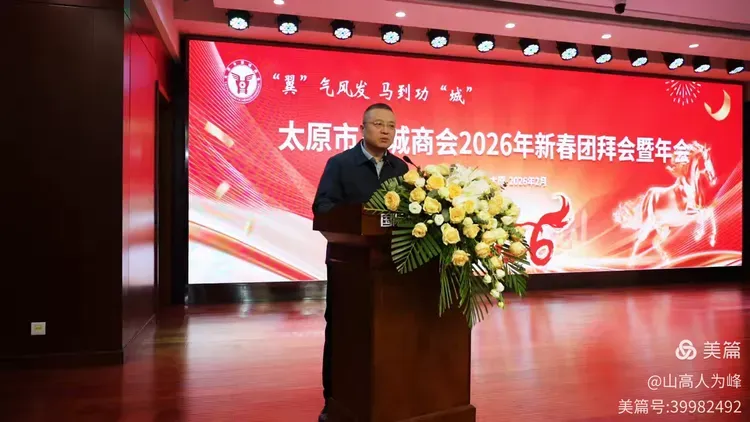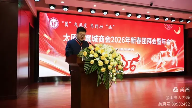 太原市工商联副主席刘慧资作讲话。代表太原市工商联(总商会)对翼城商会年会的召开表示热烈祝贺,并向与会人员致以诚挚的新春问候!对翼城商会在强化政治引领、服务会员企业发展、促进两地经济交流、积极投身社会公益等方面所展现出的高度责任感、凝聚力和各项工作的成效成绩给予肯定,同时对商会发展提出了三点希望:商会强化政治引领,在“凝心聚力”上展现更强担当;商会勇于开拓创新,在“服务发展”上创造更佳业绩;商会勇担社会责任,在“回报桑梓”上发挥更大作用。