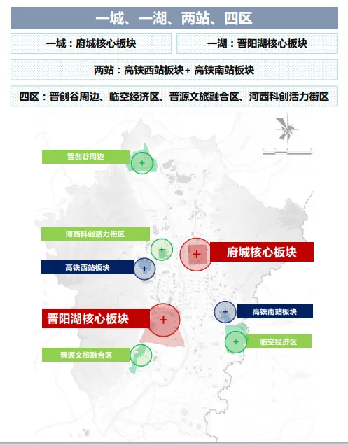 打造站城融合枢纽、对外开放门户。重点发展与高铁枢纽紧密联系的总部经济、枢纽商业、品牌展销、文旅休闲等业态,形成太原东部地区特色窗口、门户枢纽。