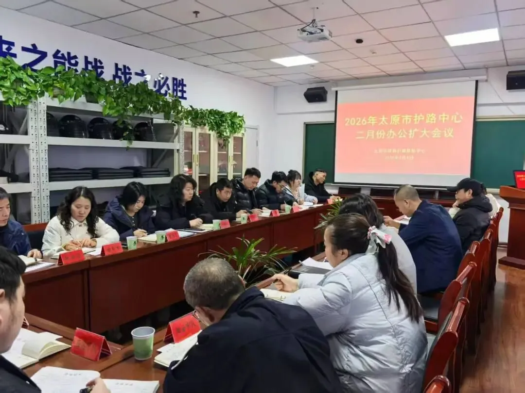 2月6日,太原市护路中心组织召开2026年二月份办公扩大会议暨“月读书•阅快乐”第四十八期读书分享交流会。市护路中心全体工作人员、各县(市、区)护路办专职干事及各中队中队长齐聚一堂,凝心聚力部署重点工作,以书香涵养履职初心。会议由市护路中心主任韦占斌主持。