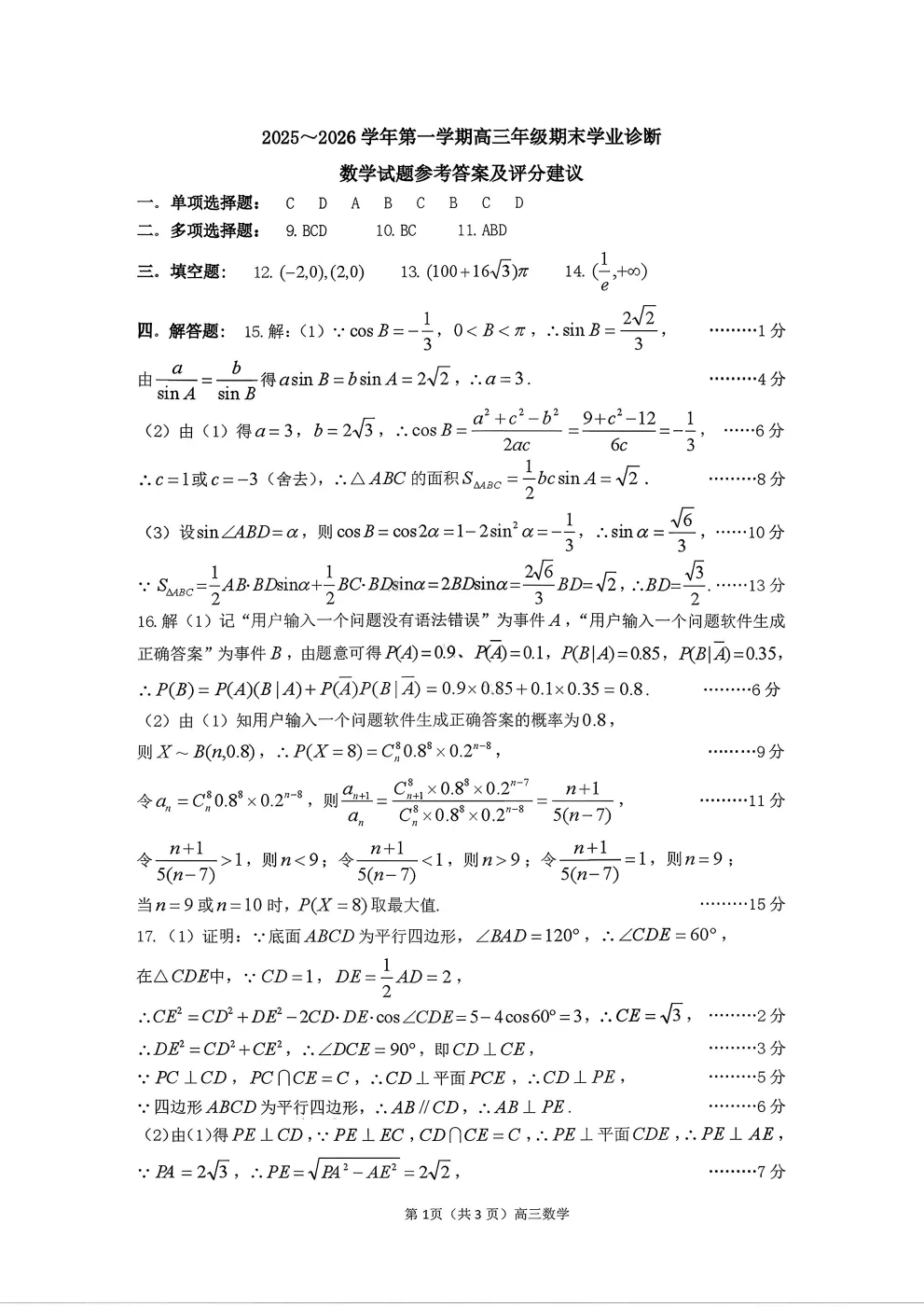【太原高三期末全科】太原25-26学年上学期期末试题答案全部更新(含听力)