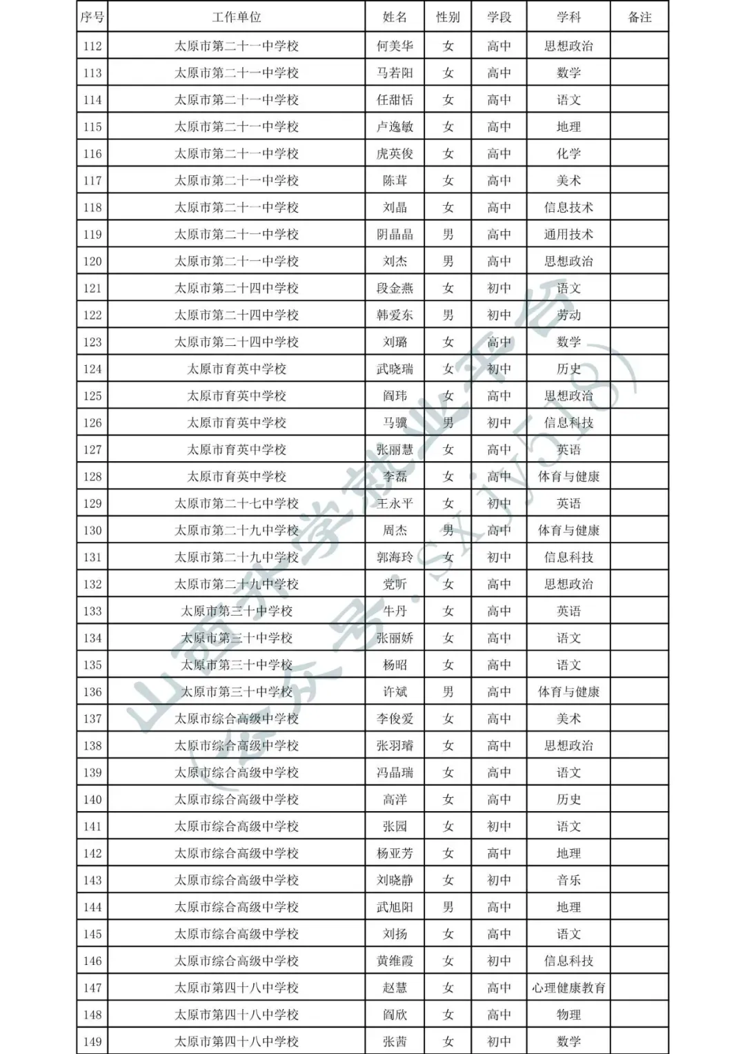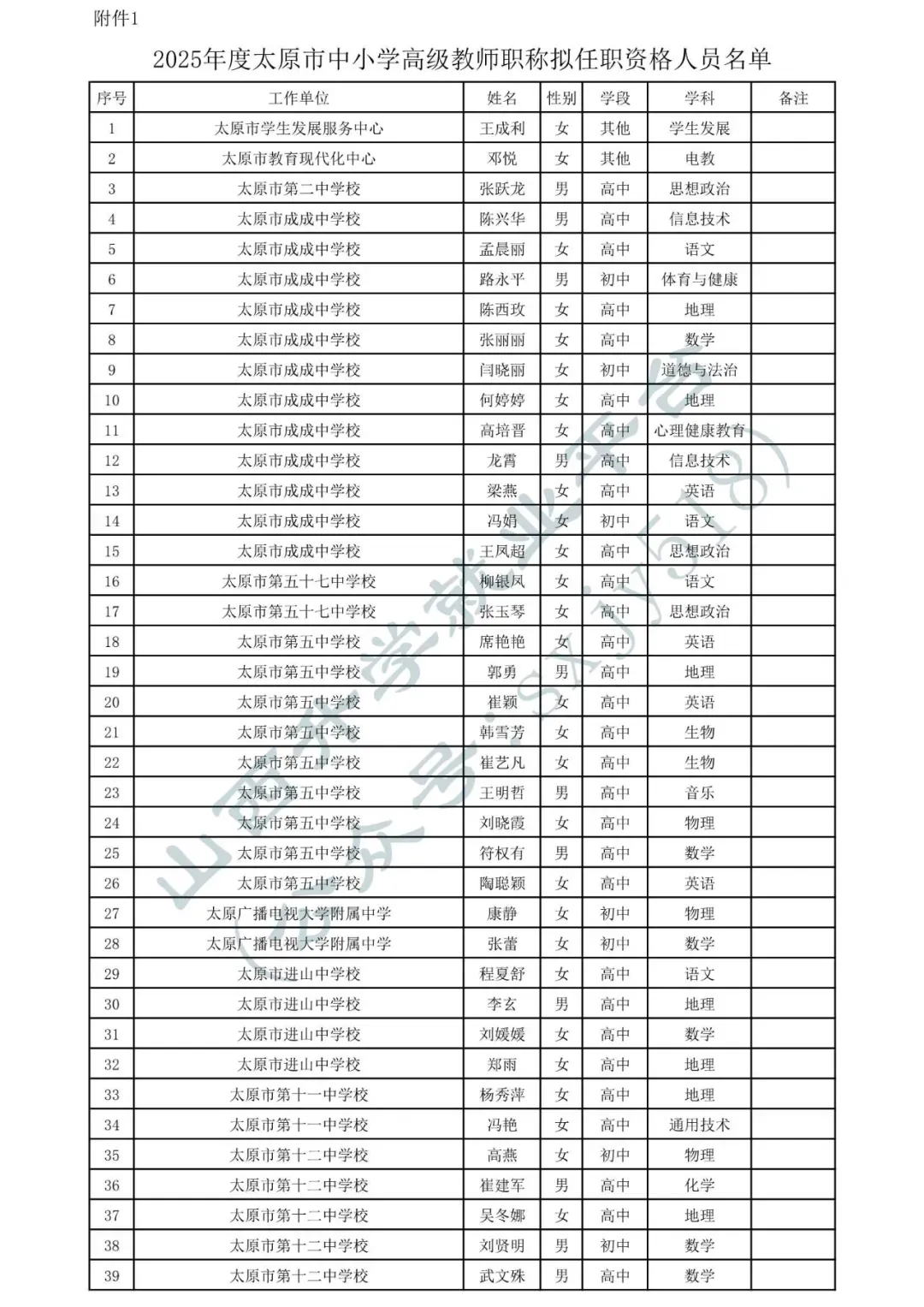 • 1.2025年度太原市中小学高级教师职称拟任职资格人员名单
