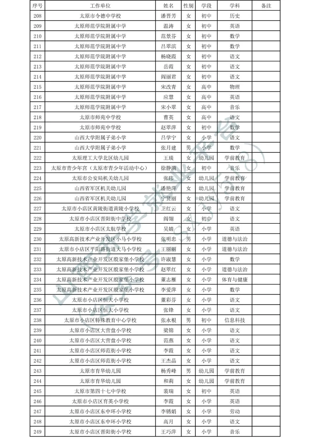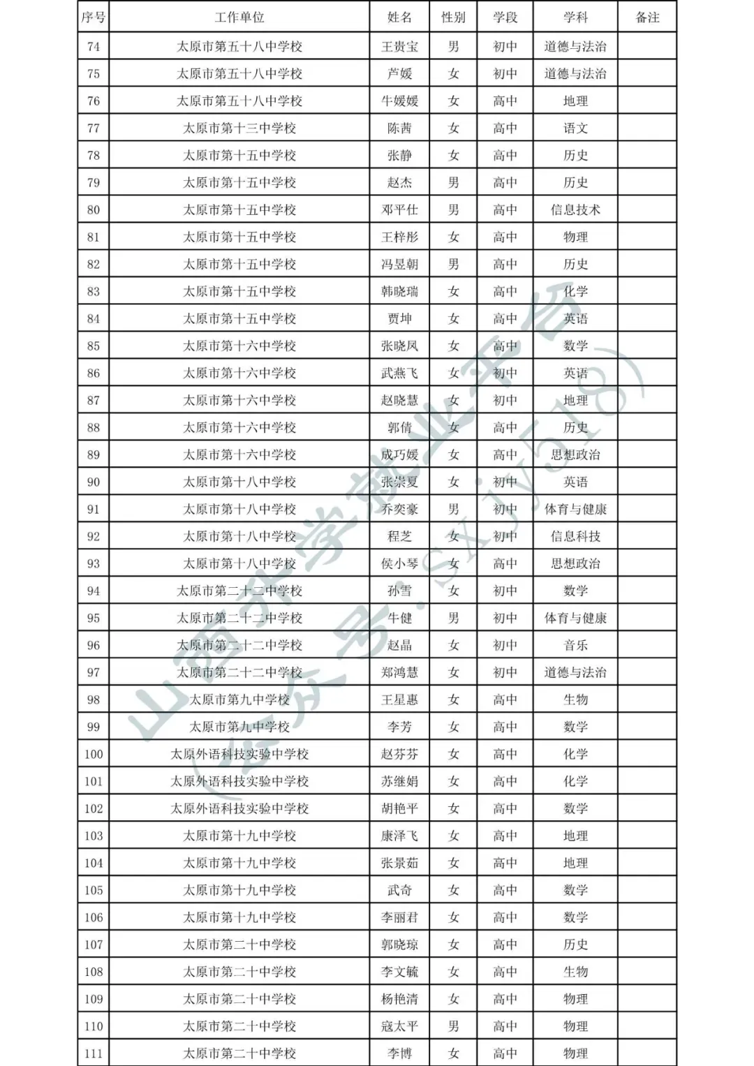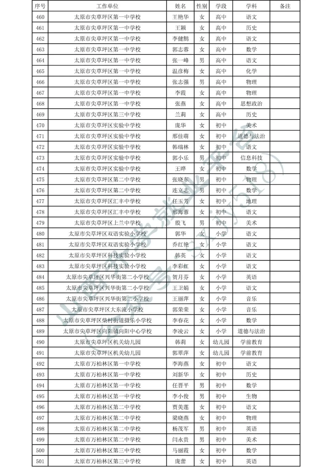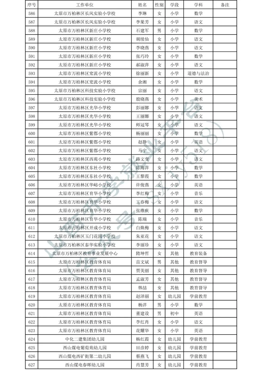 太原市中小学、幼儿园、中职学校教师系列职称拟任职资格人员名单