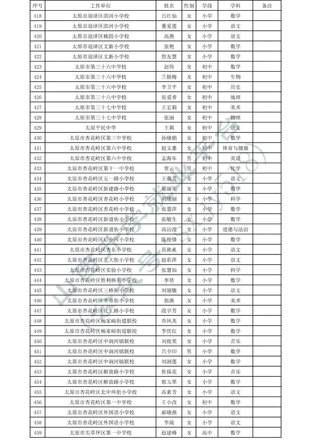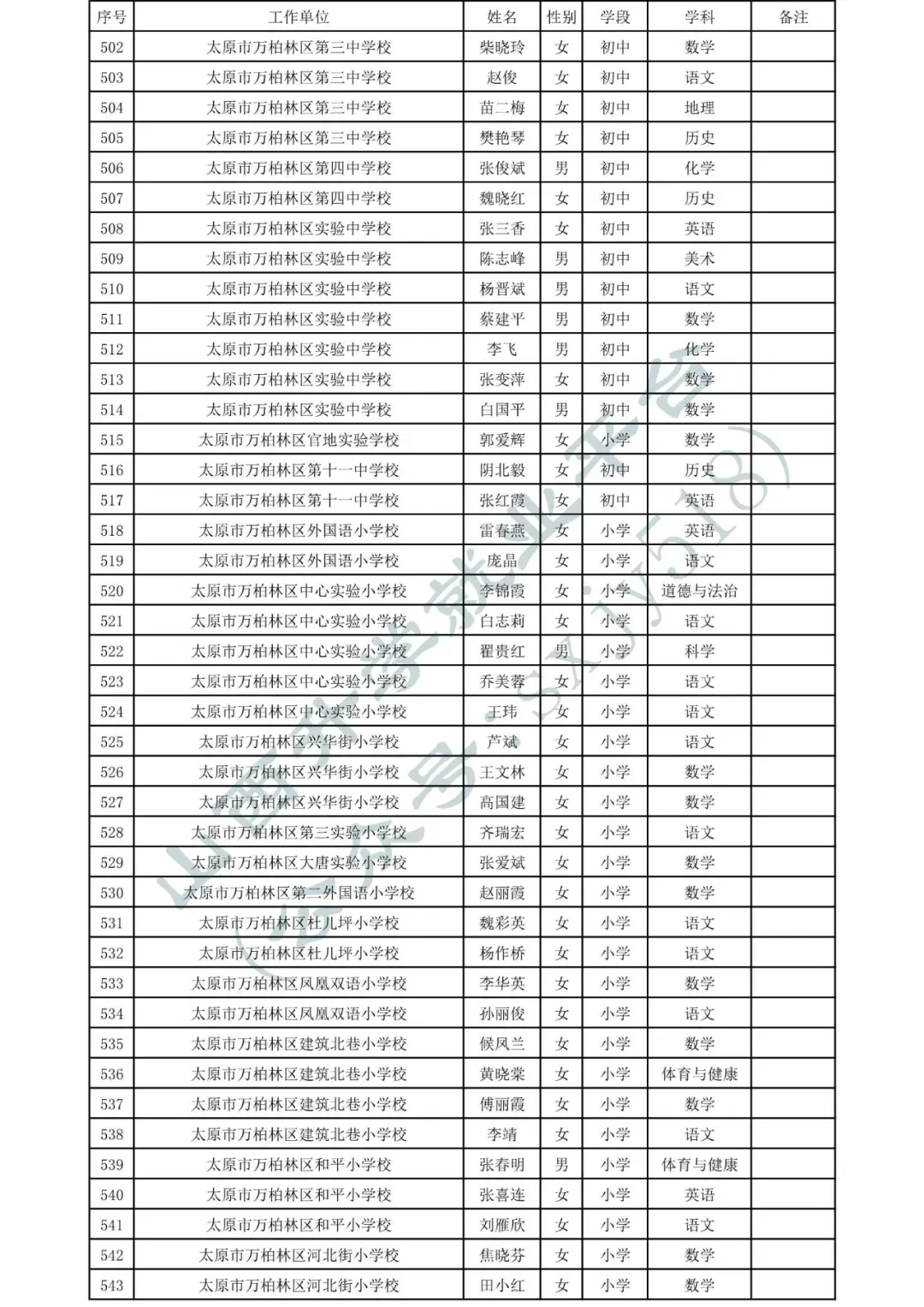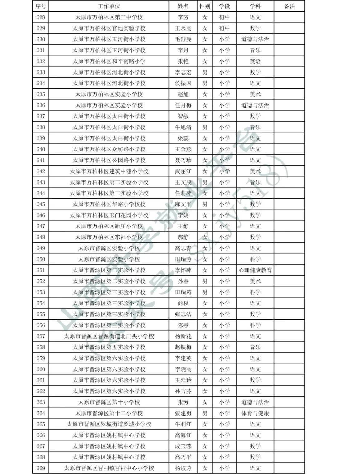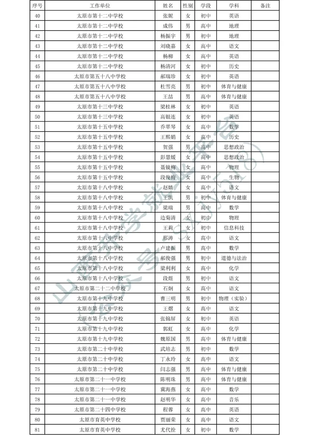 太原市中小学、幼儿园、中职学校教师系列职称拟任职资格人员名单