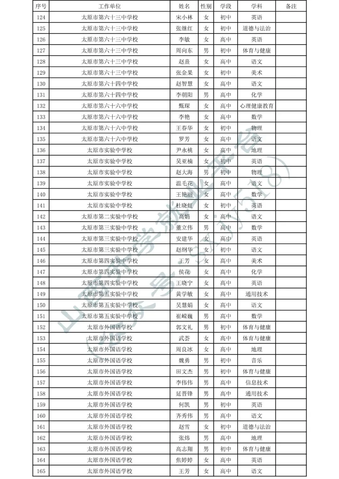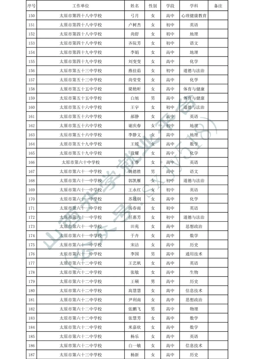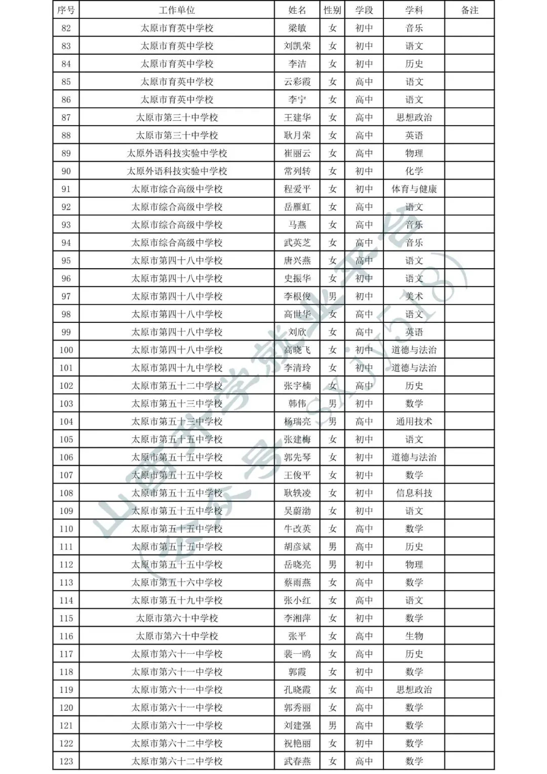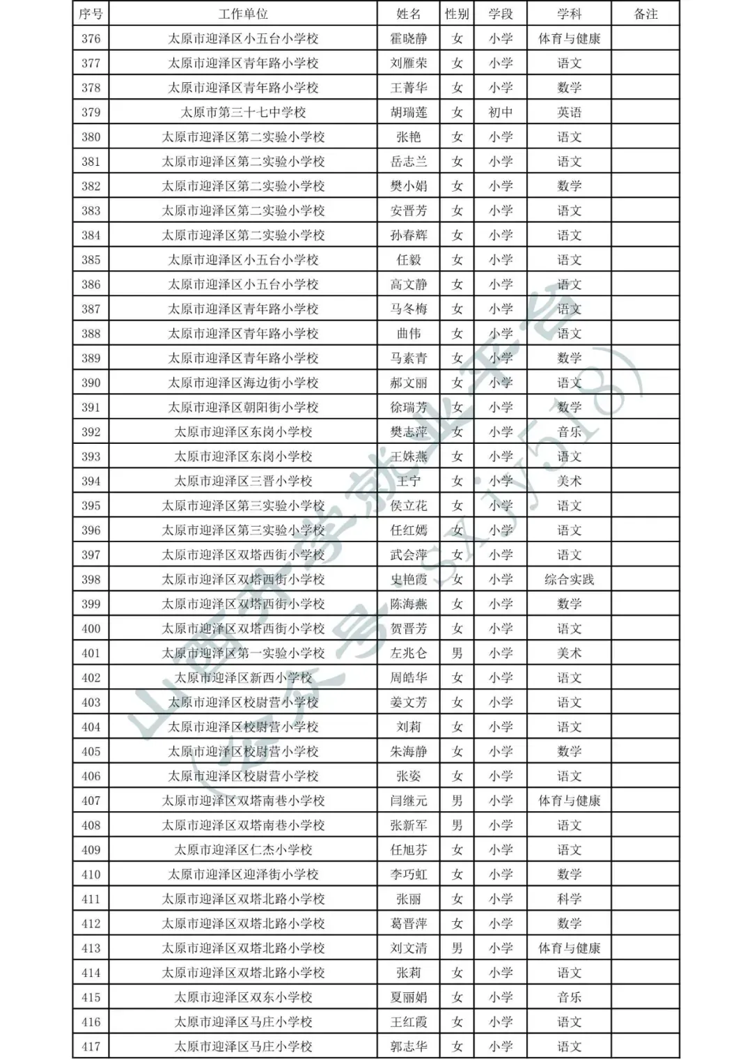 太原市中小学、幼儿园、中职学校教师系列职称拟任职资格人员名单