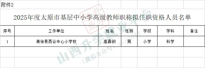 • 2.2025年度太原市基层中小学高级教师职称拟任职资格人员名单