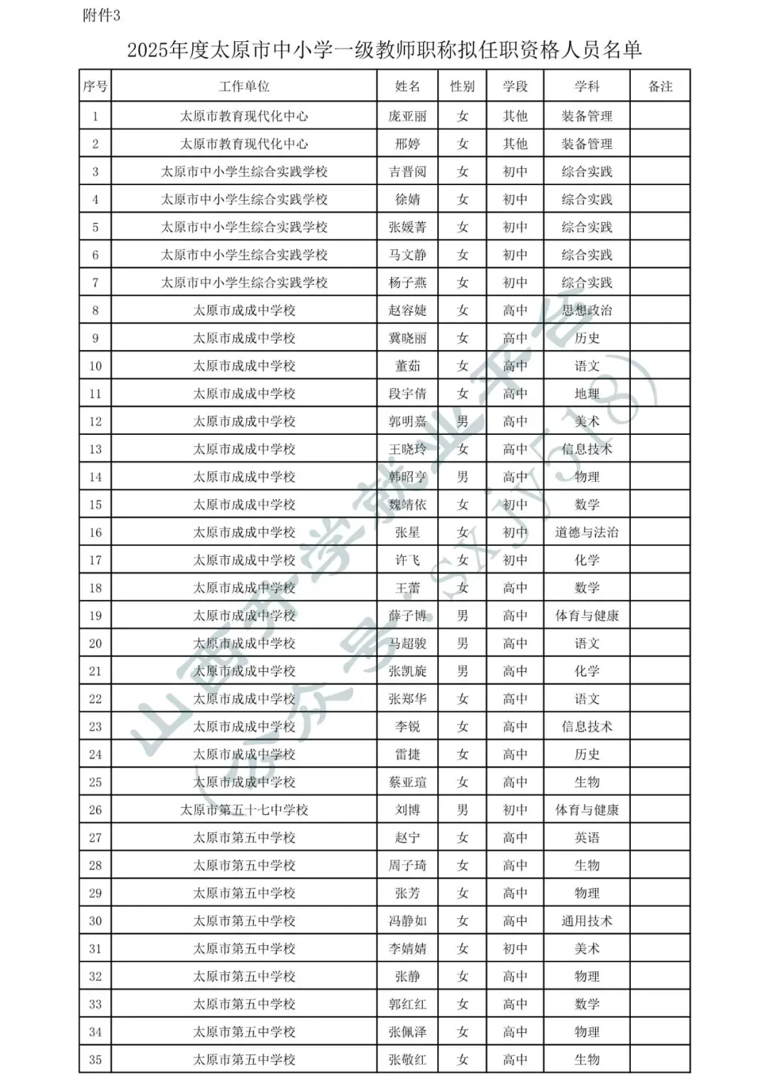• 3.2025年度太原市中小学一级教师职称拟任职资格人员名单