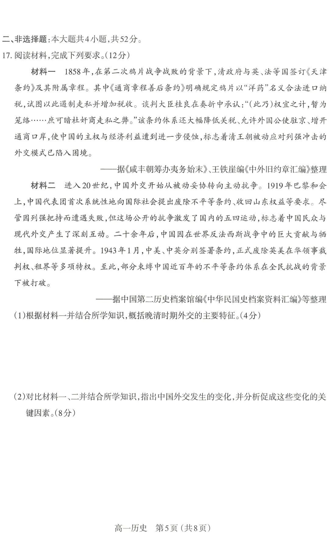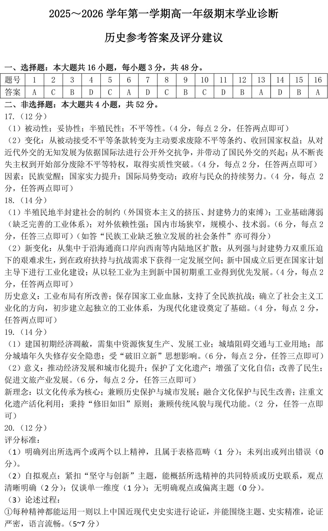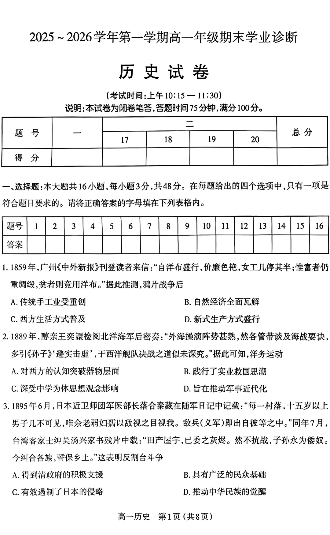 >太原 2025-2026 第一学期 高一期末 学业诊断 历史