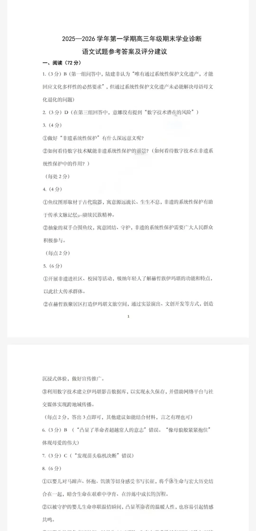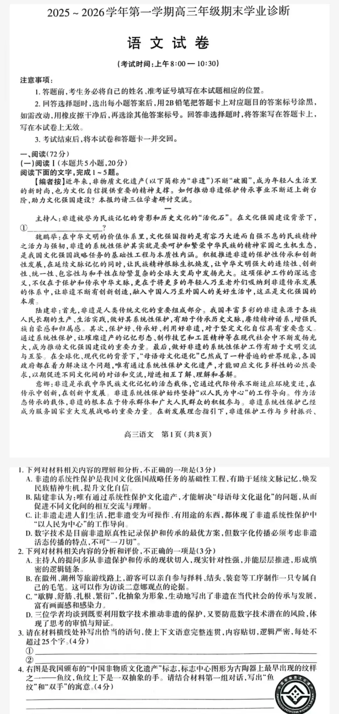 山西省太原市2025-2026学年第一学期高三年级2月期末学业诊断及官方答案