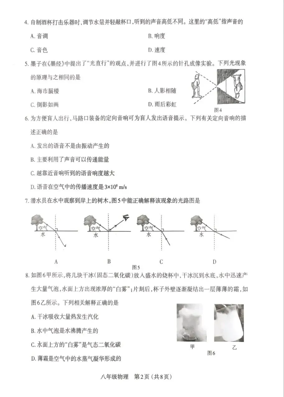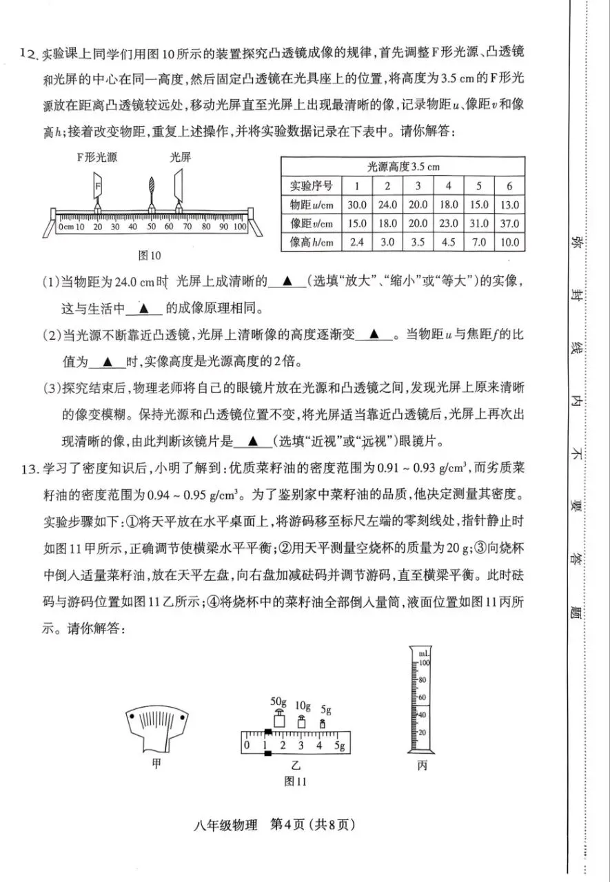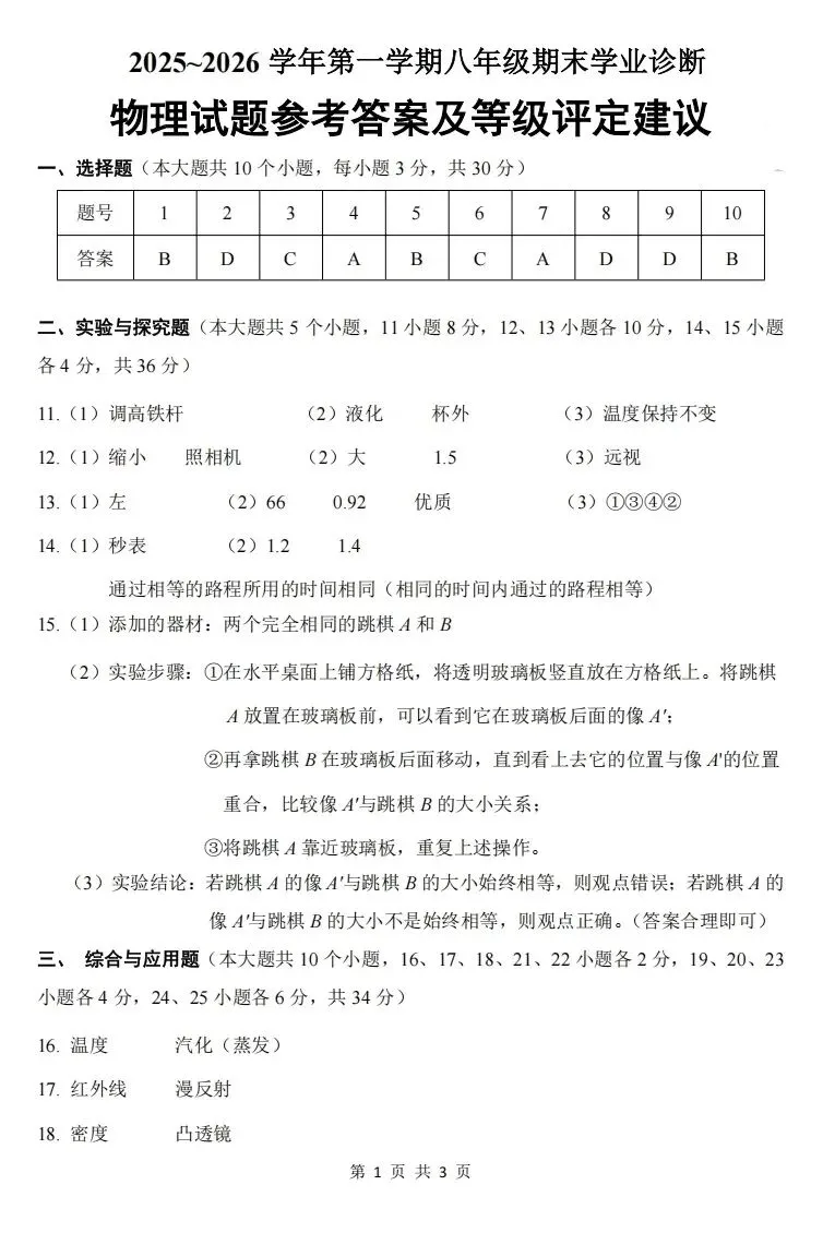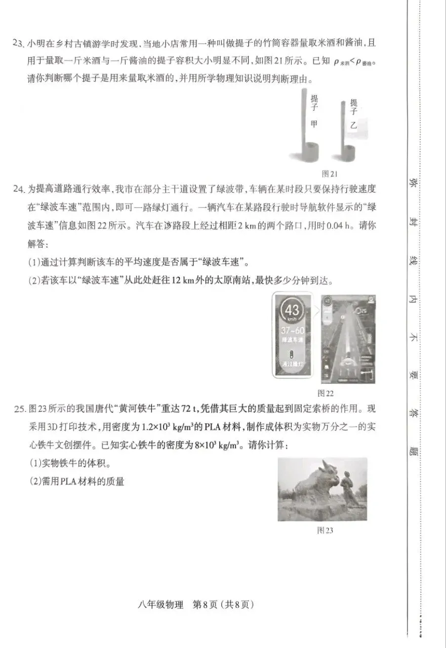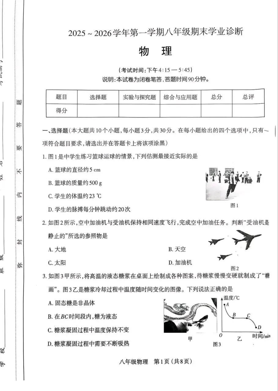 太原市2025-2026八年级物理第一学期期末学业诊断