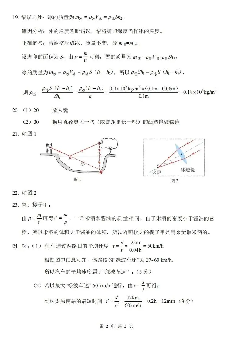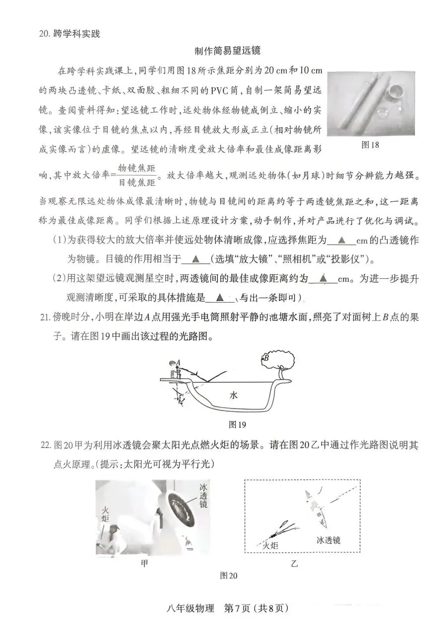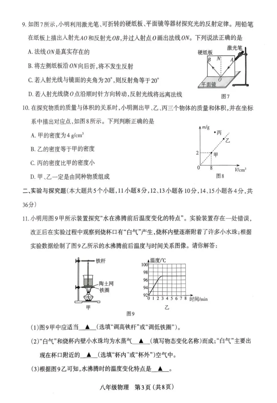>太原市2025-2026八年级物理第一学期期末学业诊断