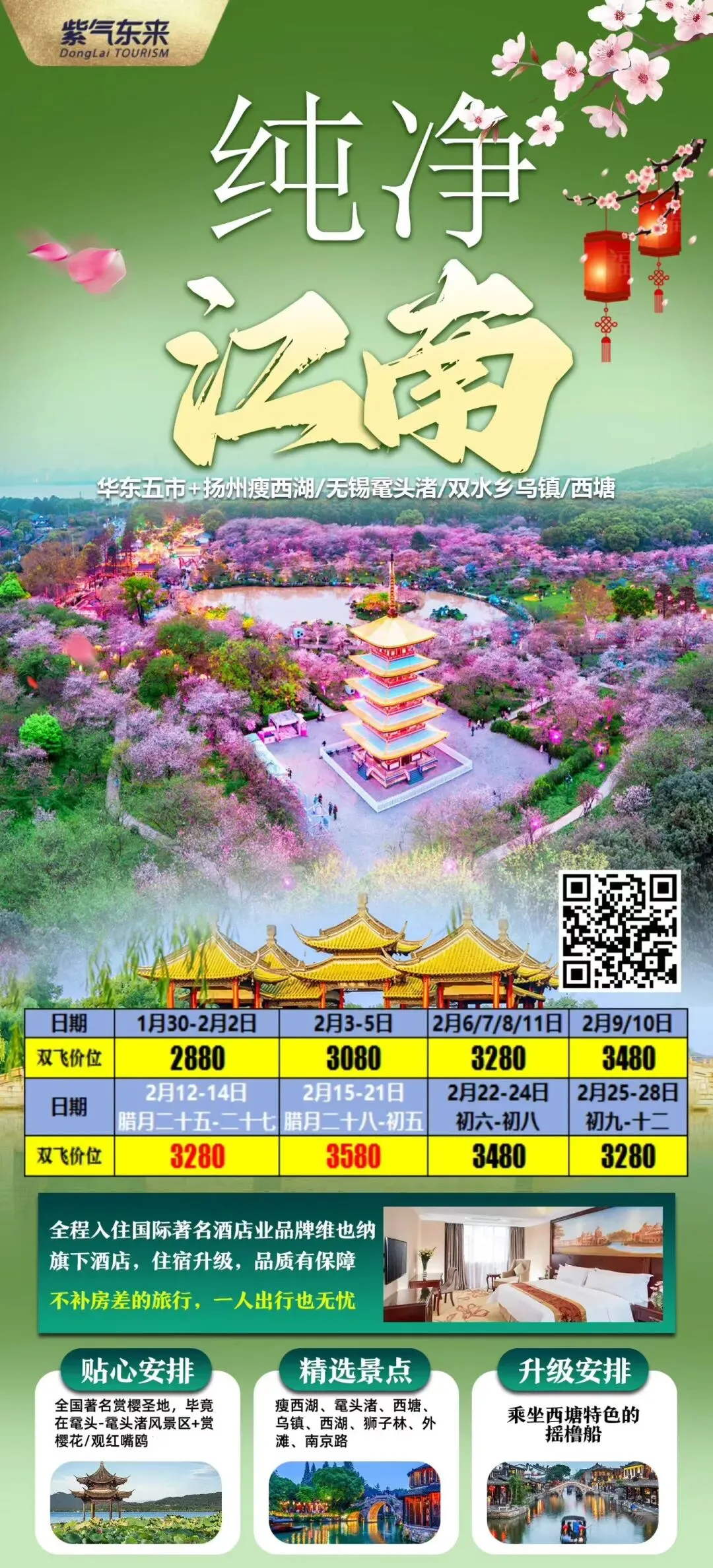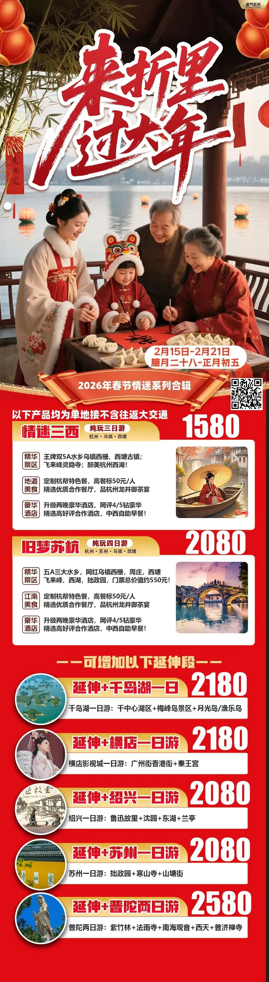 [玫瑰]情迷普陀:杭州+乌镇+西塘+普陀山+五钻+50*1餐+0购物我到江南过大年*苏沪杭/迪士尼