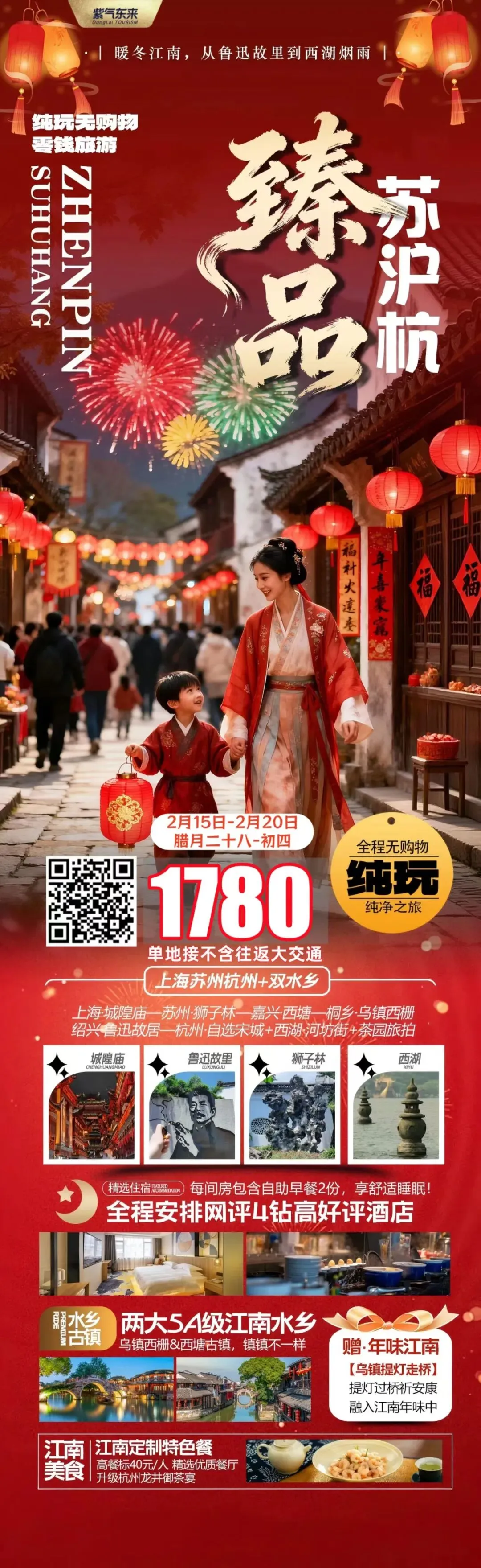 [玫瑰]臻品江南:苏沪杭+绍兴+四钻+40*3餐+0购物