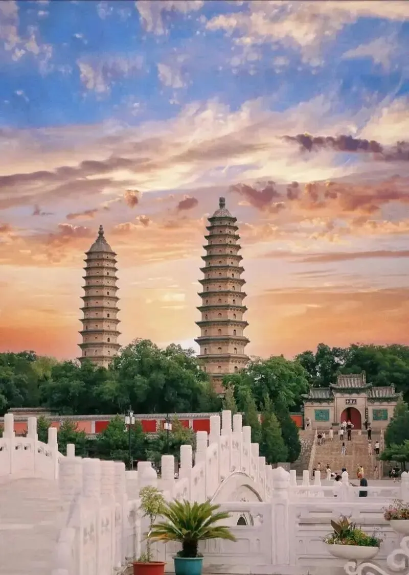 正式名叫永祚寺,明万历年间立的双塔,砖身细长,十三层,一东一西,远看像两支笔。