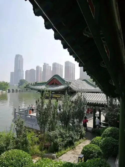 迎泽公园早上光软,水面不炸,脸也不黑。