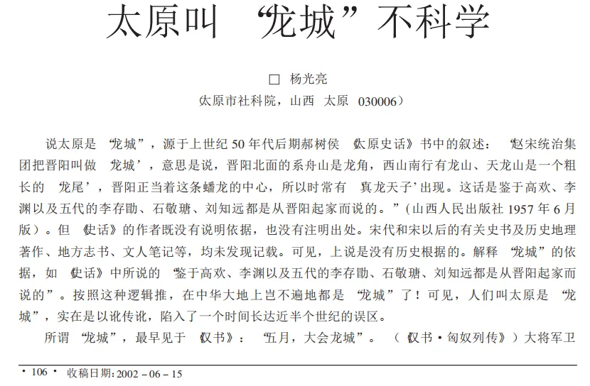 太原的历史叙事关乎文化建构,历史叙事不是完全再现历史,而是要面向现代、面向未来不断重构历史。我建议太原未来的文化发展要弱化龙城叙事,用人的叙事取代龙的叙事,或说用民本叙事替代帝本叙事。不要把历史资源搞成历史负担。