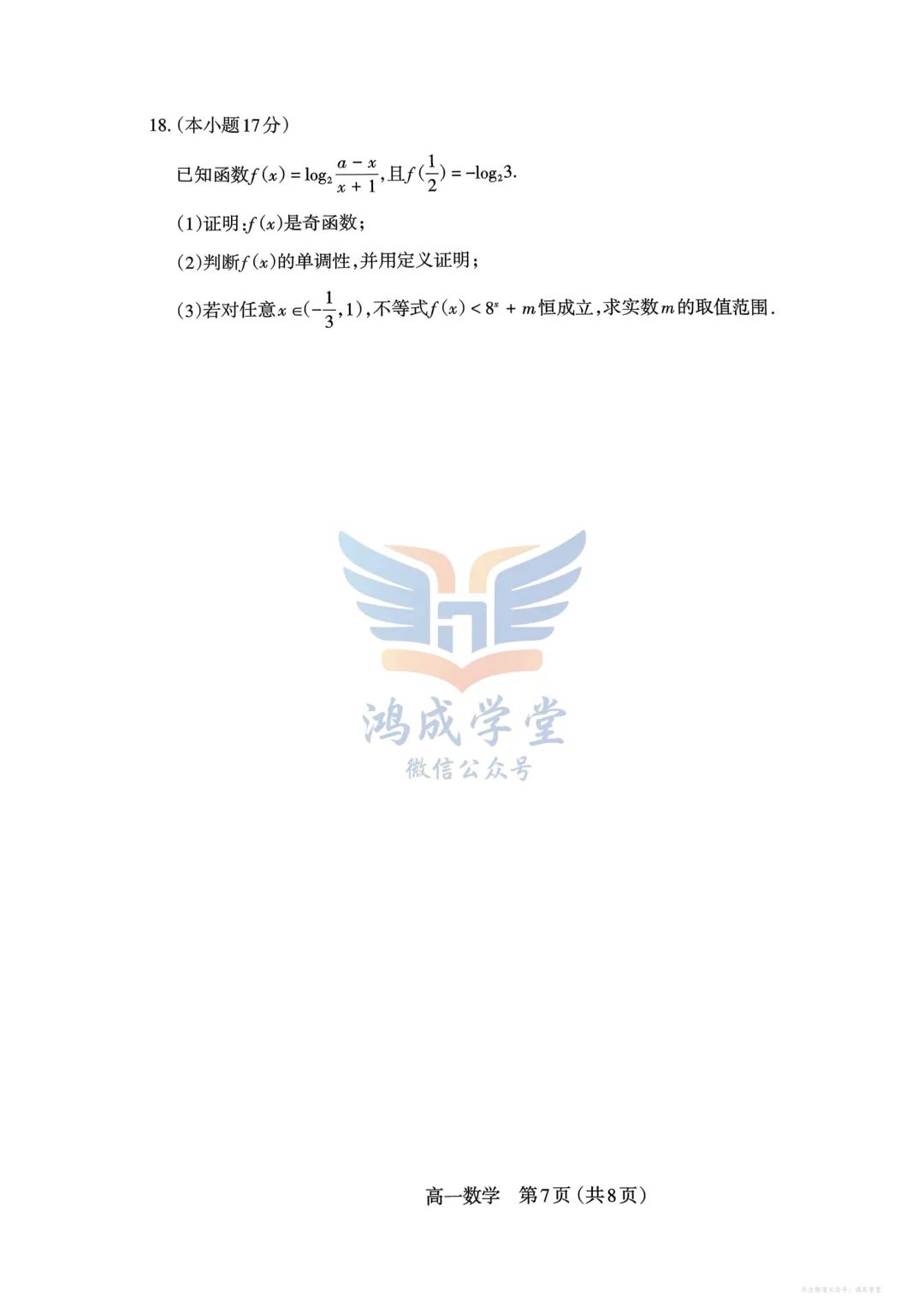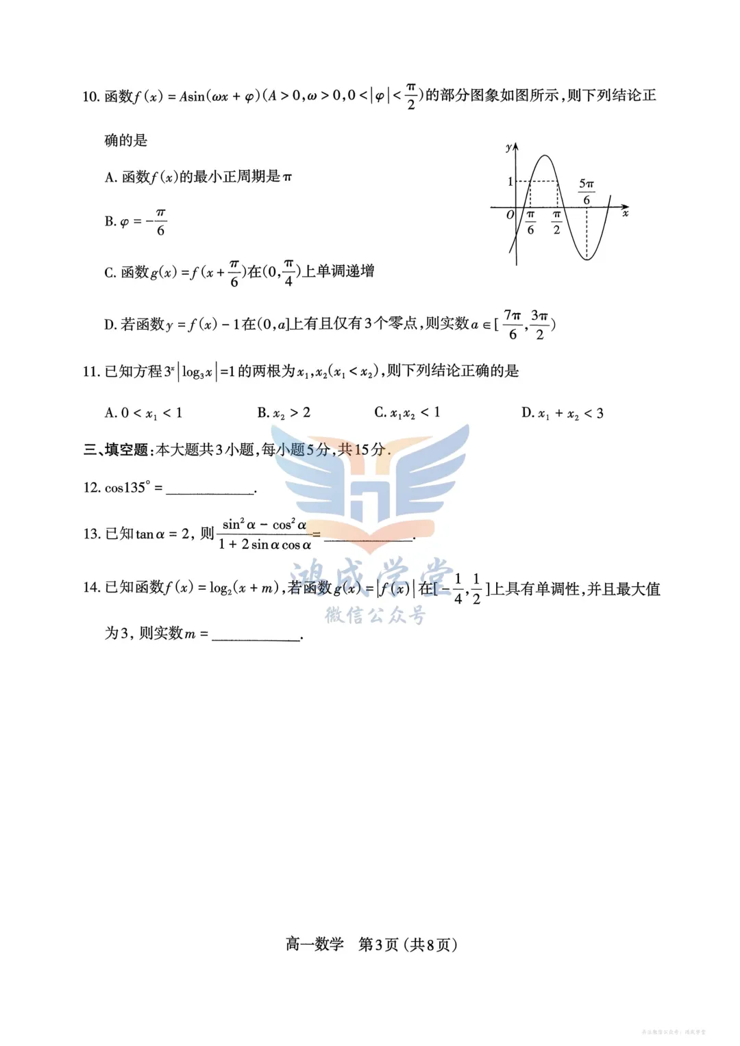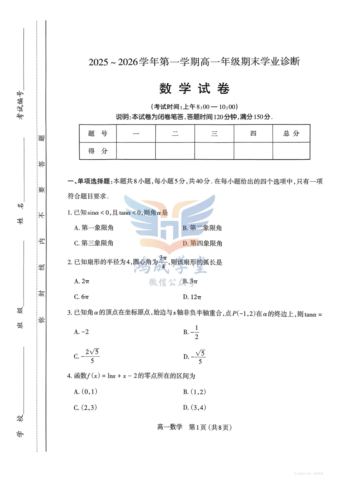山西省太原市2025-2026学年第一学期高一年级期末学业诊断数学试卷含答案