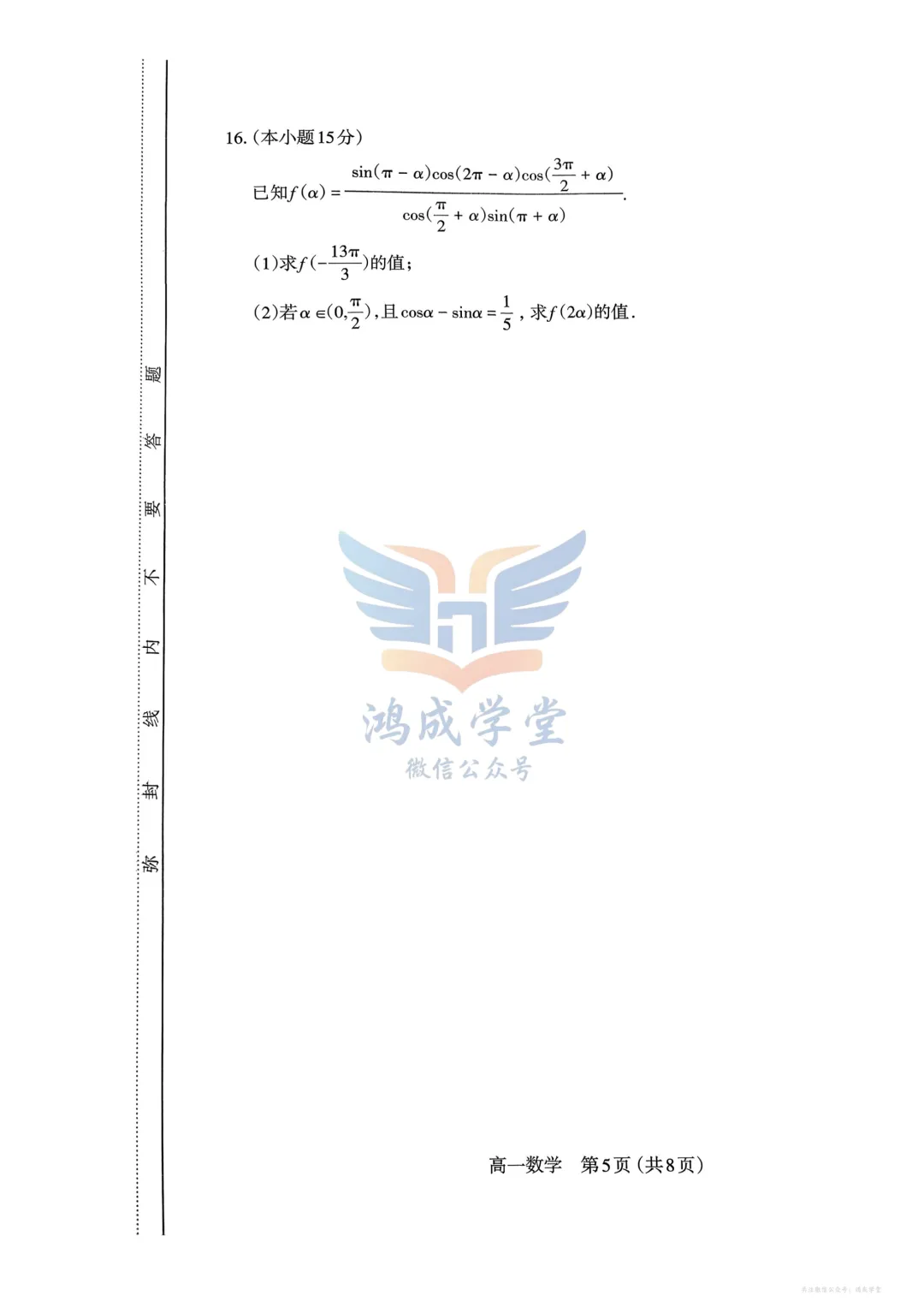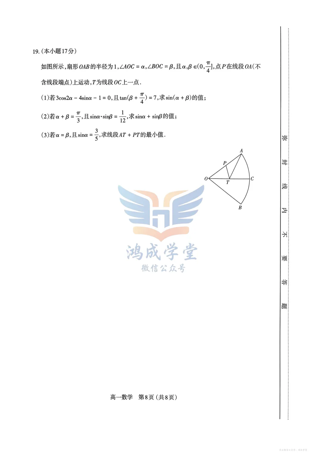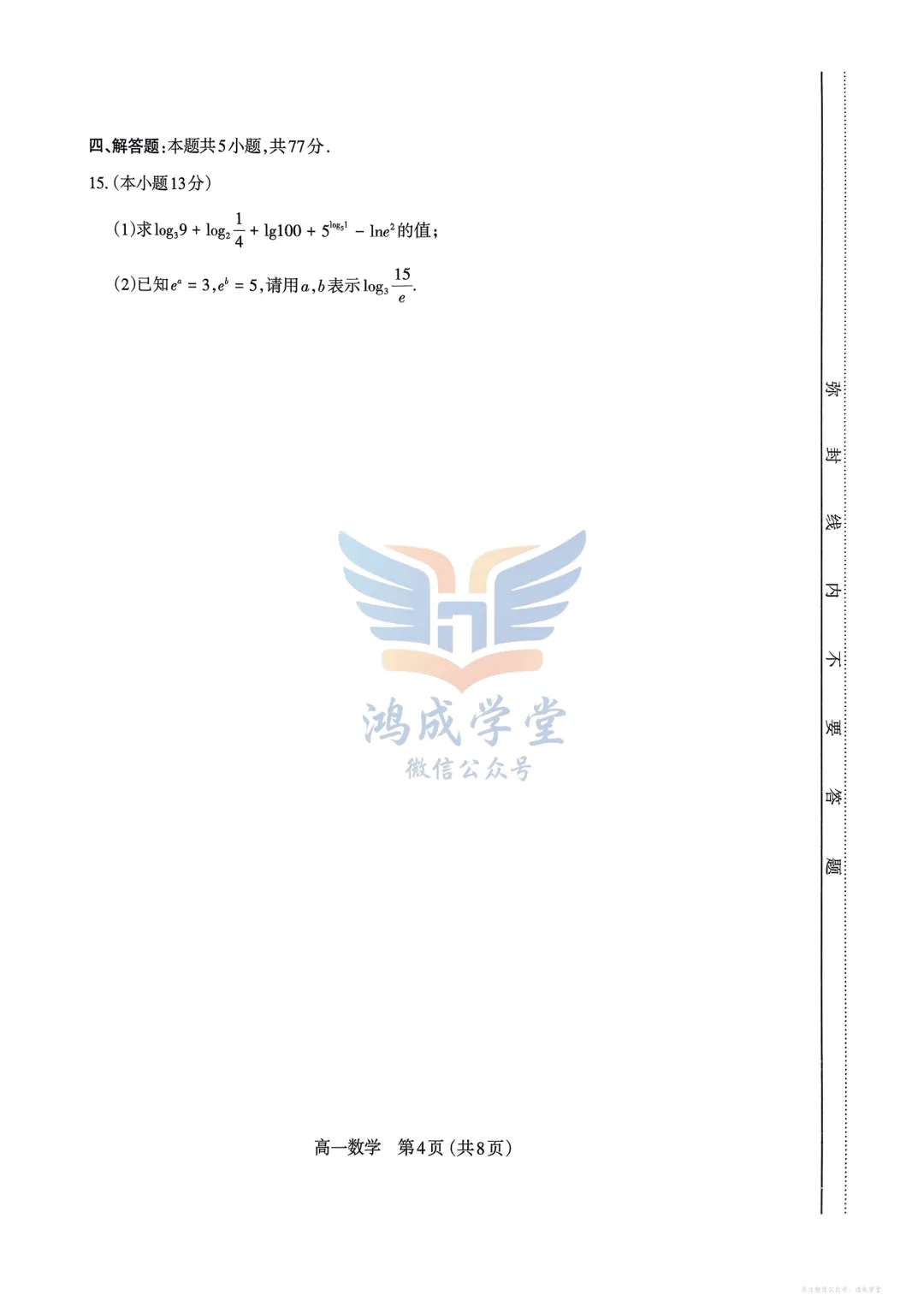 山西省太原市2025-2026学年第一学期高一年级期末学业诊断数学试卷含答案