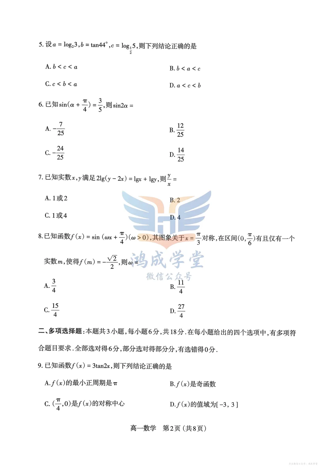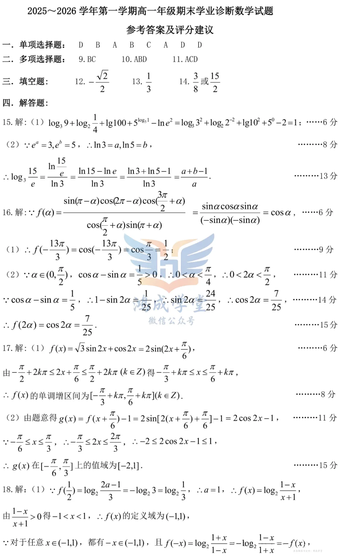 山西省太原市2025-2026学年高一上学期期末学业诊断通用答案.pdf
