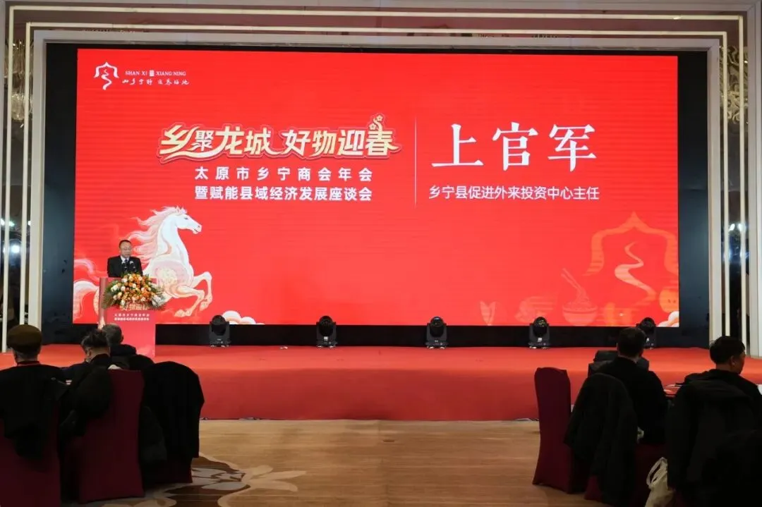 2026年2月1日下午,以“乡聚龙城、好物迎春”为主题的“太原市乡宁商会年会暨赋能县域经济发展座谈会”在太原富力铂尔曼酒店隆重举行。近200名来自太原、乡宁、上海、西安等地的党政领导、行业专家、商会代表、企业家及媒体人士齐聚一堂,共谋发展,共话合作。