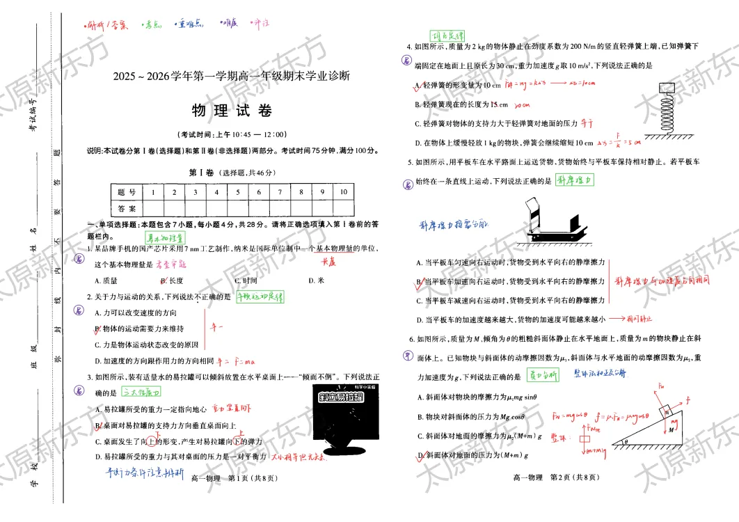 25~26学年第一学期高中阶段期末考试已经结束,我们的老师手写了试卷的详细解析,知识点、重点题型、易错点、高频考点全部为大家整理好了,快来看看吧!