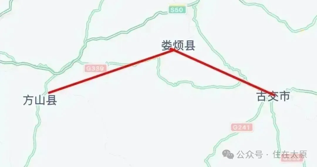 古交—娄烦—方山高速公路起点位于古交市镇城底镇城家曲村,接G2003太原西北二环高速公路,终点位于吕梁市方山县马坊镇,接S50太临高速公路。主线全长66.486公里,设计速度100公里/小时;连接线全长6.596公里,设计速度60公里/小时。这条高速公路投入使用后,将打通太原市西向快速联系通道,强化古交、娄烦与市区的联系。