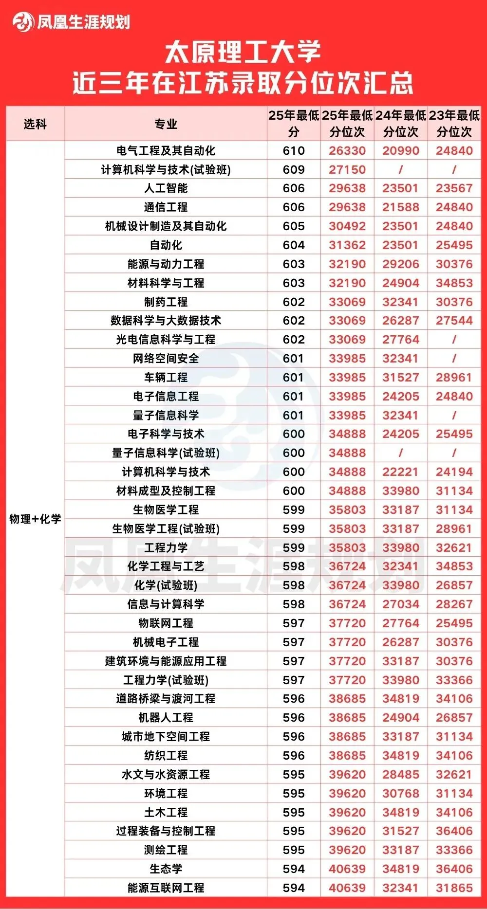 太原理工大学近三年在江苏录取分及位次汇总