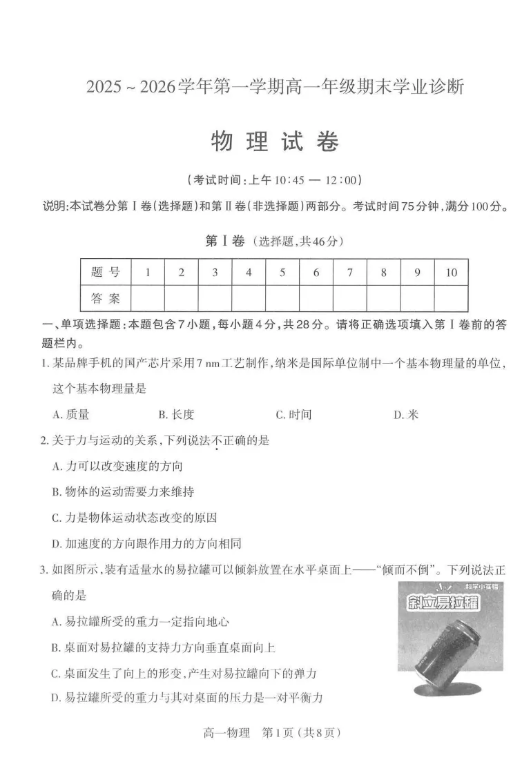 高一学习阶段的关键总结时刻来啦!2025 - 2026 学年山西太原市高一第一学期期末学业诊断已结束,现汇总语数外等全科试卷及答案,助你精准复盘,夯实基础,快来看看吧!