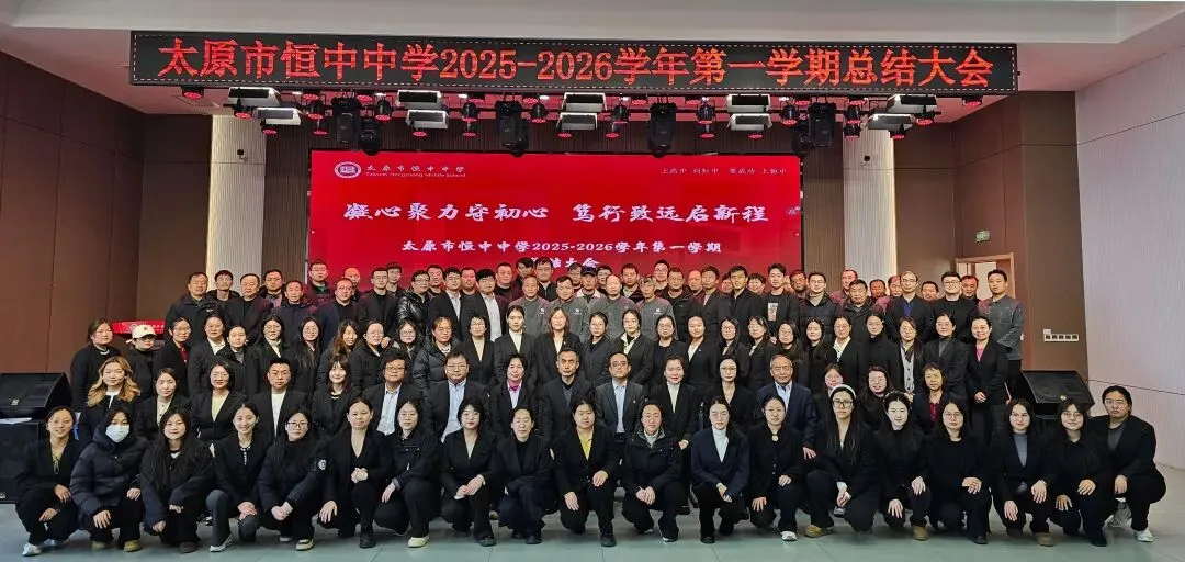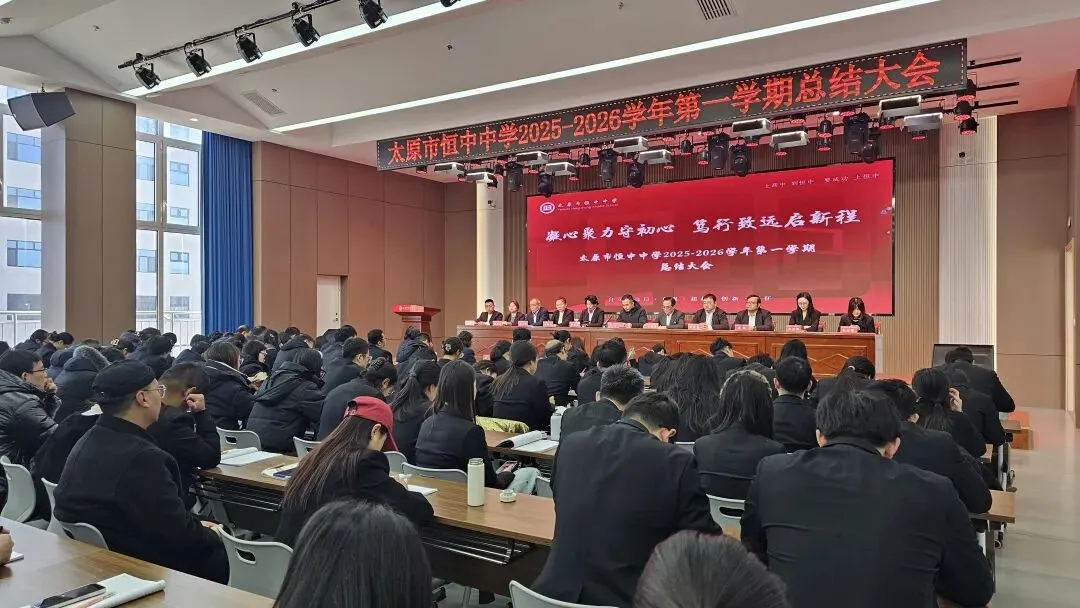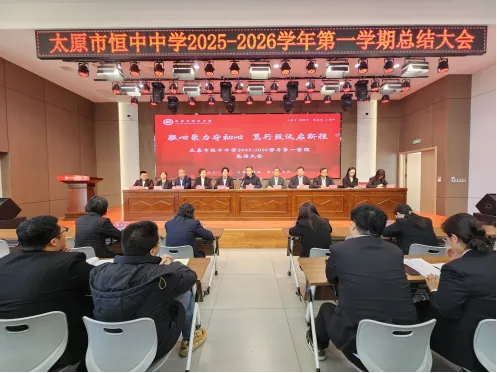 岁序更替,华章日新。在这冬蕴生机、春潮将至的美好时刻,2026年2月7日,太原市恒中中学召开了2025-2026学年第一学期教职工期末工作总结大会暨寒假作业计划工作部署会,共同回首耕耘路,展望奋进新征程,全体在校教职工参加会议。会上,太原市恒中中学董事长/创校校长许宁对本学期重点工作进行了总结,对教学处在教学方面,教研处在教研工作方面,德育处在德育工作方面,AI智慧教育事业部智慧校园方面,人力资源管理方面,后勤保障等方面做了全面精细的总结,并对各部门优秀人员做出表扬和激励.