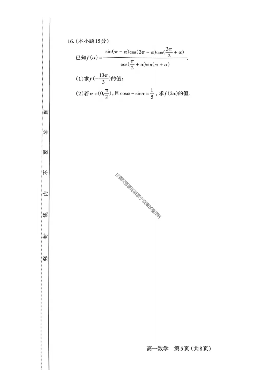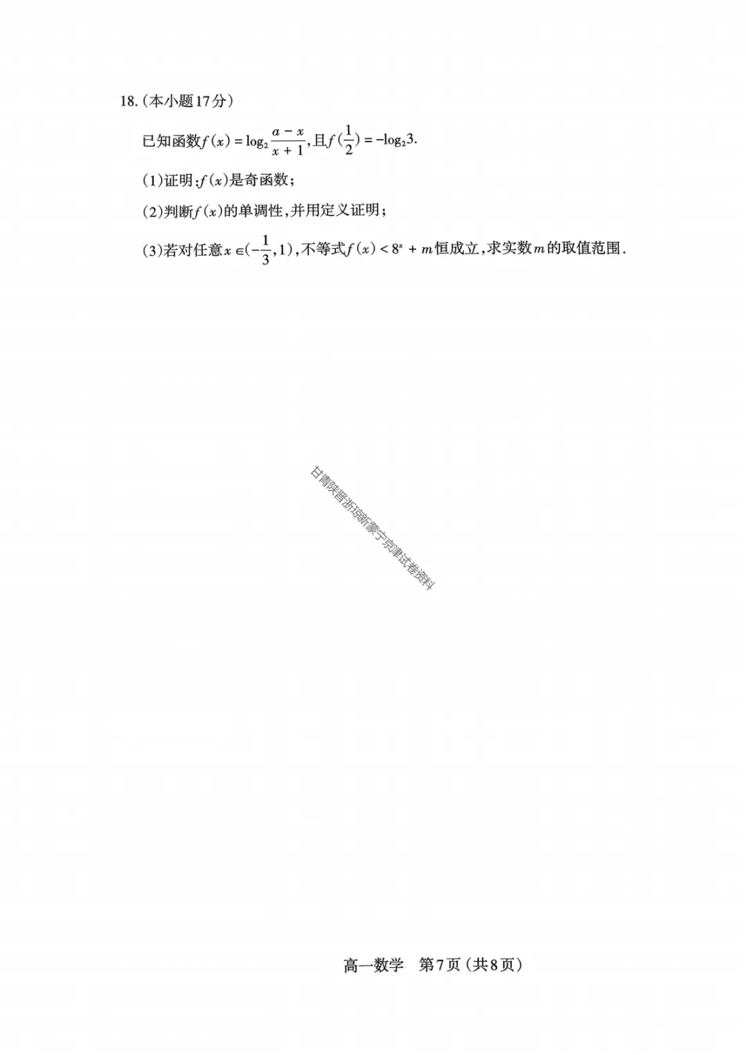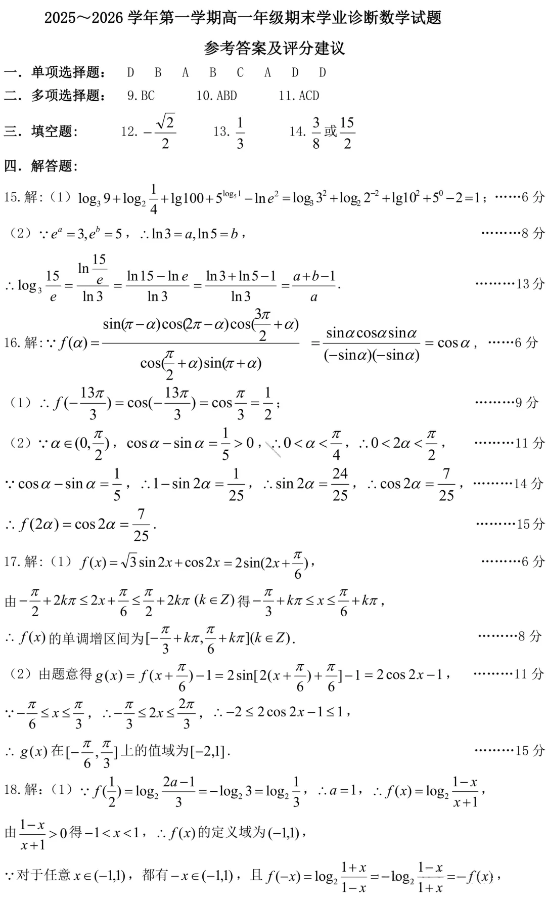>【数学】太原市2025-2026学年高一上学期期末考试试卷及答案