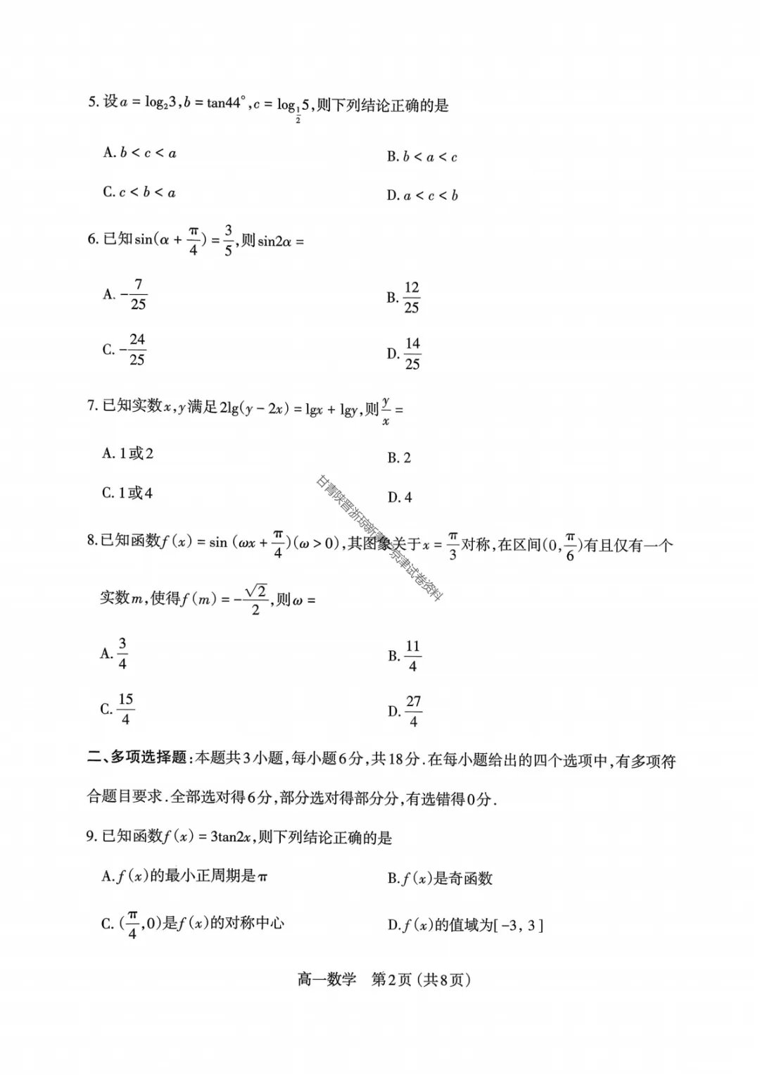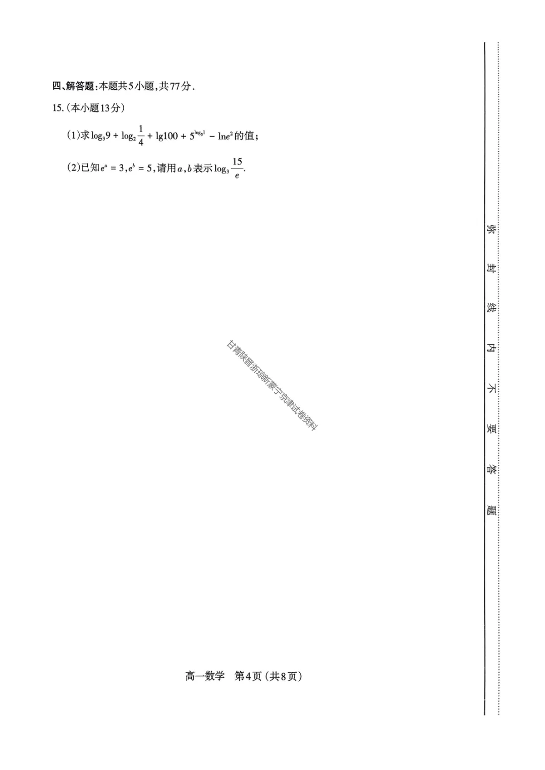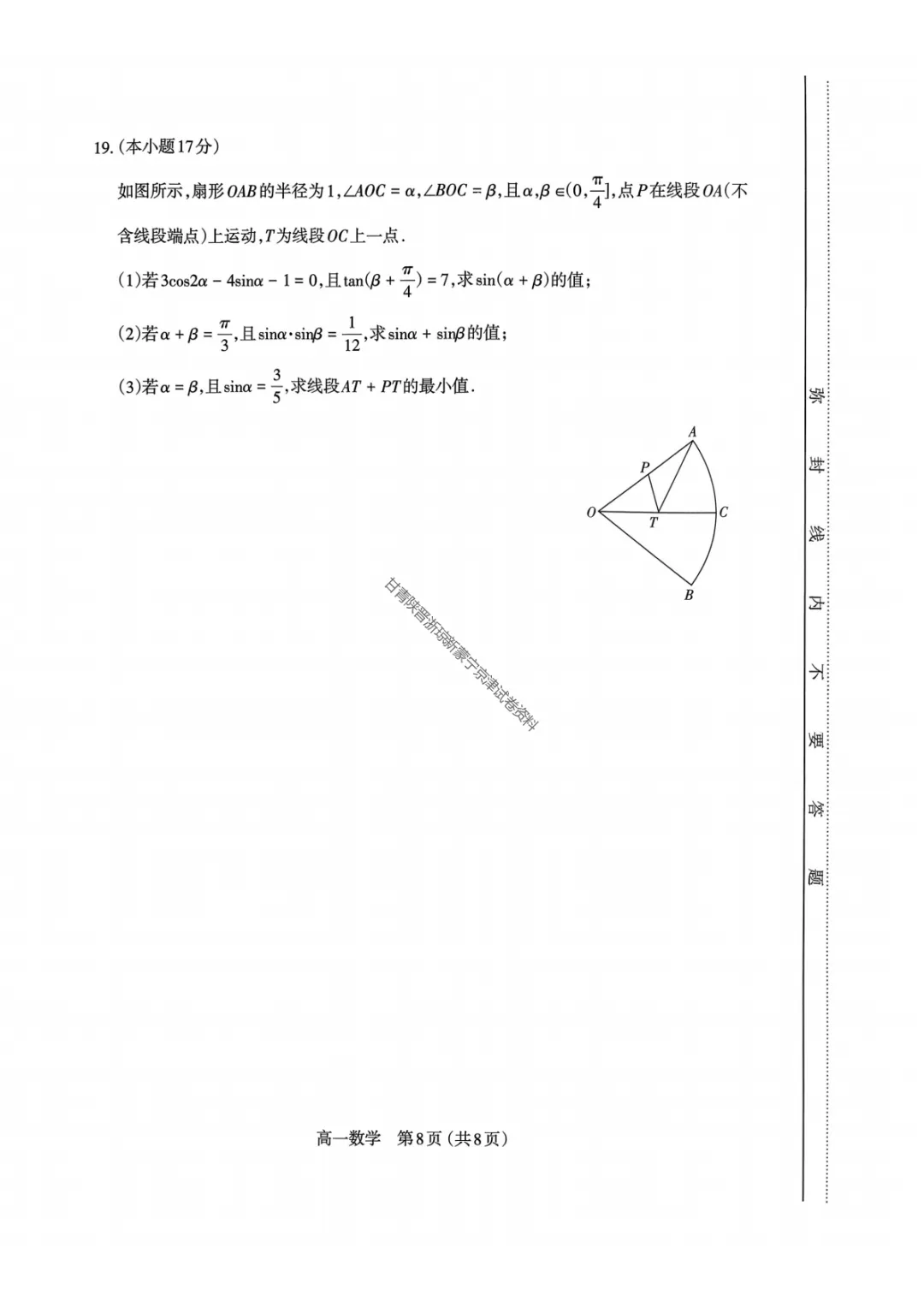 >【数学】太原市2025-2026学年高一上学期期末考试试卷及答案