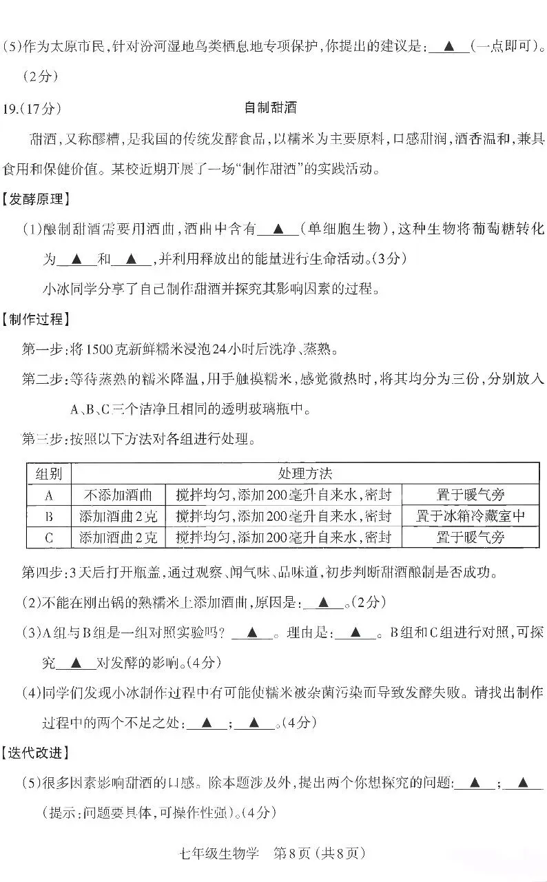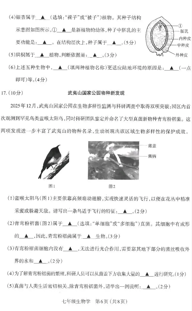 (6)银杏和珙桐(2分)它们能产生种子;它们的受精过程摆脱了对水环境的依赖(一点即可,其他合理亦可)(2分)