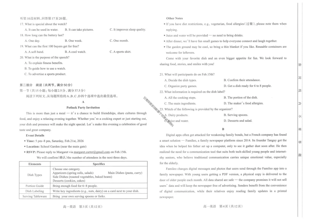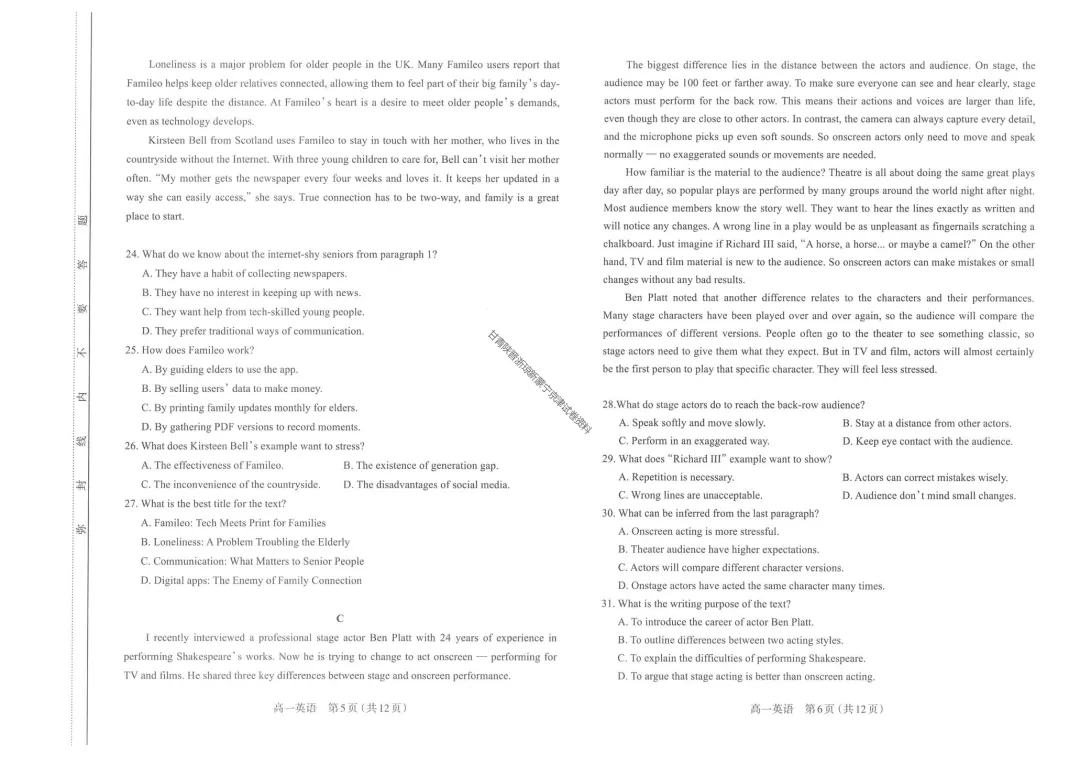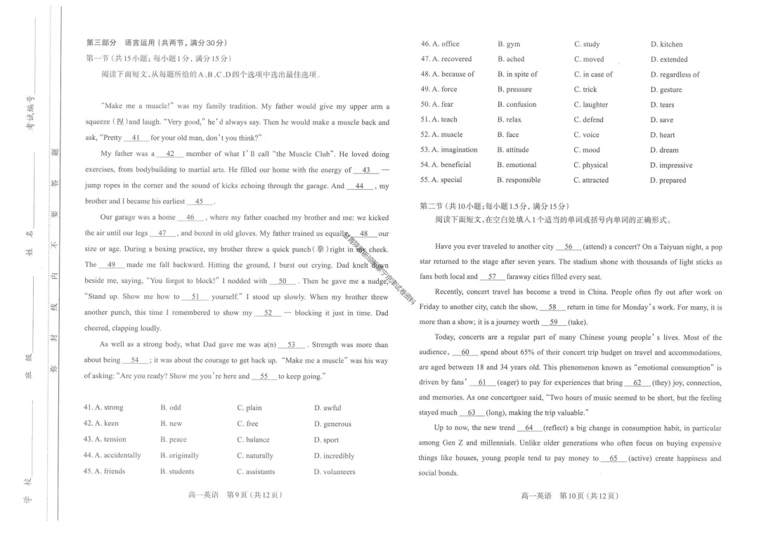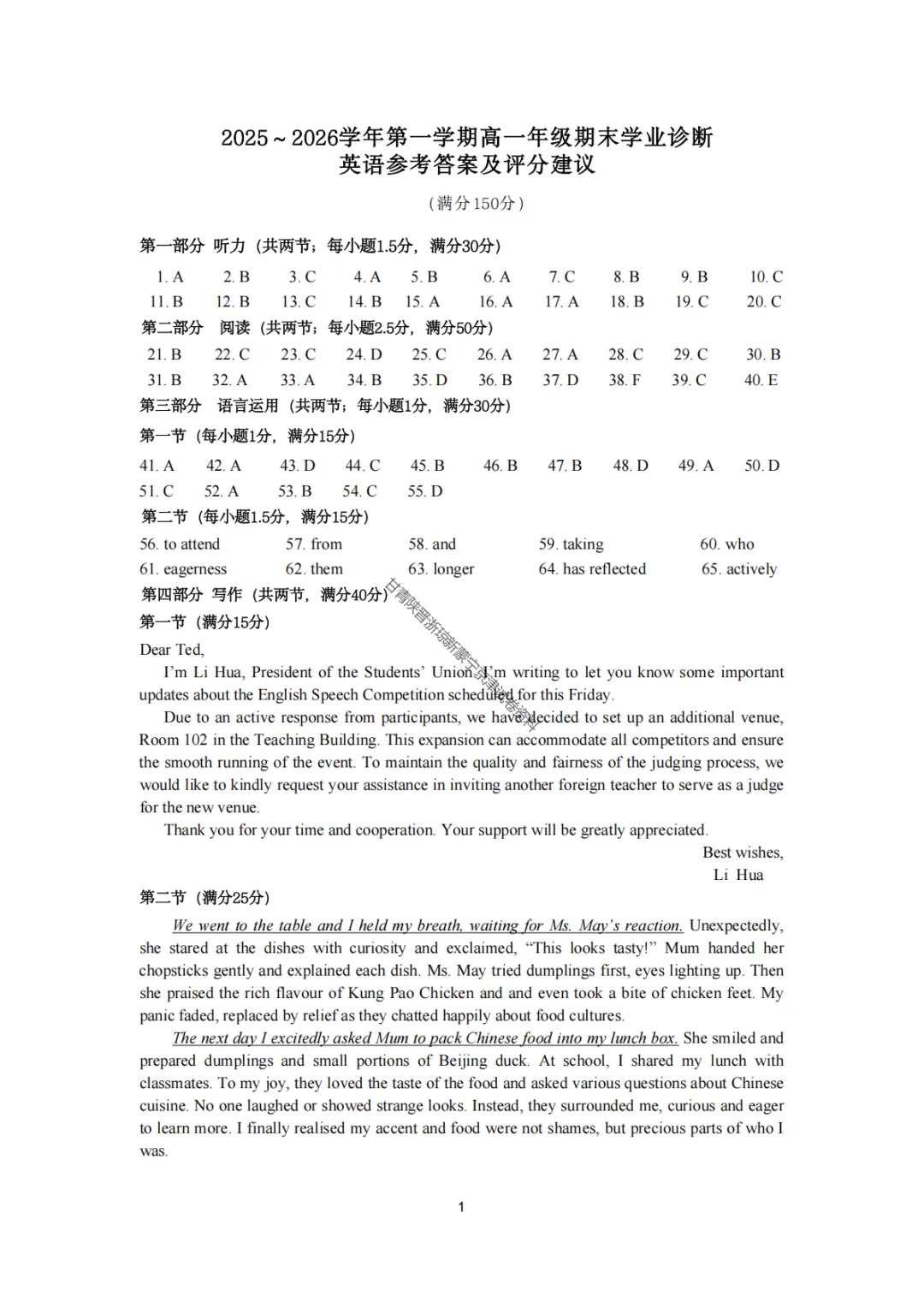 >【英语】太原市2025-2026学年高一上学期期末考试试卷及答案