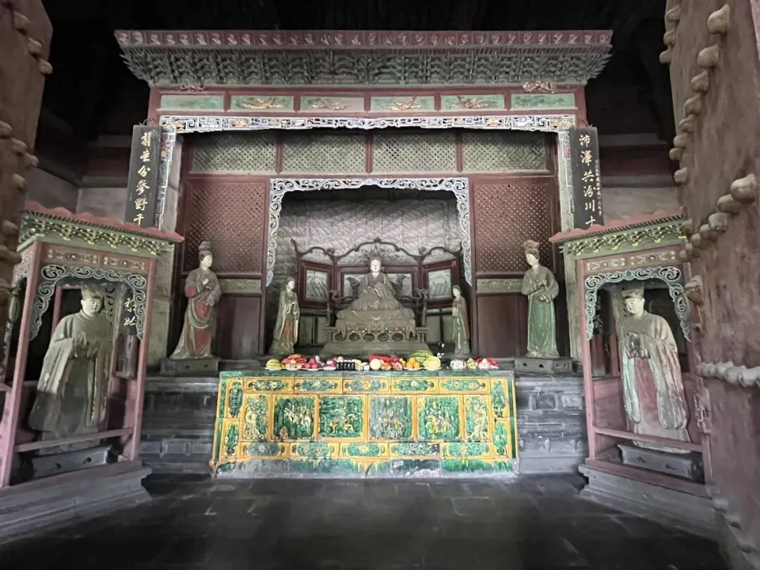 宋代彩塑侍女像突破了宋以前宗教造像的模式,成为现实生活中真实人物的写照,是按照封建社会的宫廷制排列的,是宋代皇室生活的缩影,展现了不同年龄、不同个性的女性形象,她们个个眉目传神,形态潇洒,栩栩如生,开创了雕塑艺术写实作品的先河。它不仅是中国雕塑史上唯一反映宋代宫廷人物的造像,而且是中国雕塑史上艺术高超的罕见精品,被誉为是古今中外历史上最伟大的雕塑艺术作品之一,在中国雕塑史和美术史上占有重要地位。但是在圣母殿内,无缘近观,只能蹭别的导游讲解。