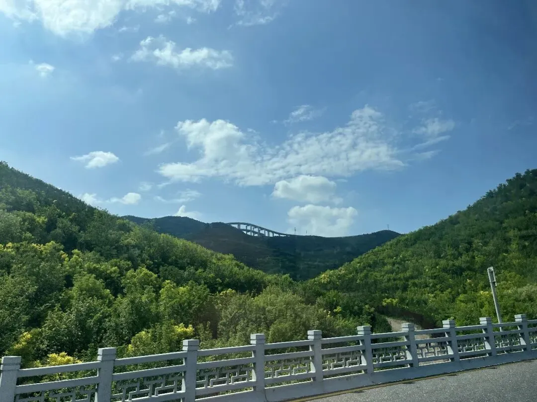 参观完了三绝三宝三匾之后,晋祠基本也看完了,沿着出口有导引可以前往天龙山石窟摆渡车乘车处。4块钱的车费,真的超值,大概要坐半小时,还会路过网红桥,只是不能下车拍照。桥上很多自驾过来的游客,驻足拍照中。坐到山顶检票处,然后一路下行游览。