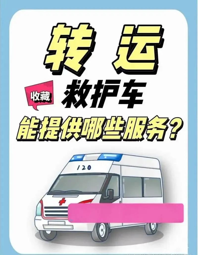 我们是120救护车出租转运服务咨询公司,我们是专业为出院转院、长途跨省、120上门接送病人、跨省护送服务。专业的非急救救护车,另外我们还可以飞机、高铁转运病人,如果您需要预约救护车。请直接问我们客服。