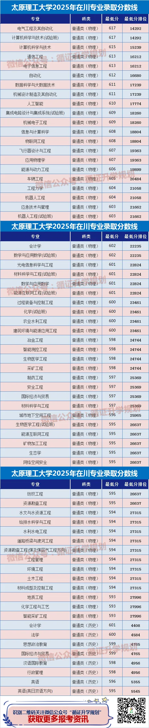 2025年四川专业录取情况:四川本科批B段普通类为主,含物理类、历史类,文理兼招、理工为主。