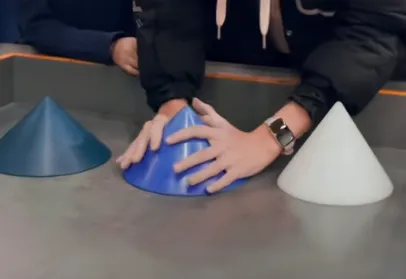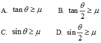 6. 如图是著名科普博主“不刷题的吴姥姥”带领同学们做实验的情景。有顶角不同的圆锥放在桌面上,同学们发现顶角为θ的圆锥,无论多大的力都不能按图示那样拿起,设手与圆锥体间的动摩擦因数为µ,则角度θ与µ满足的关系是( )