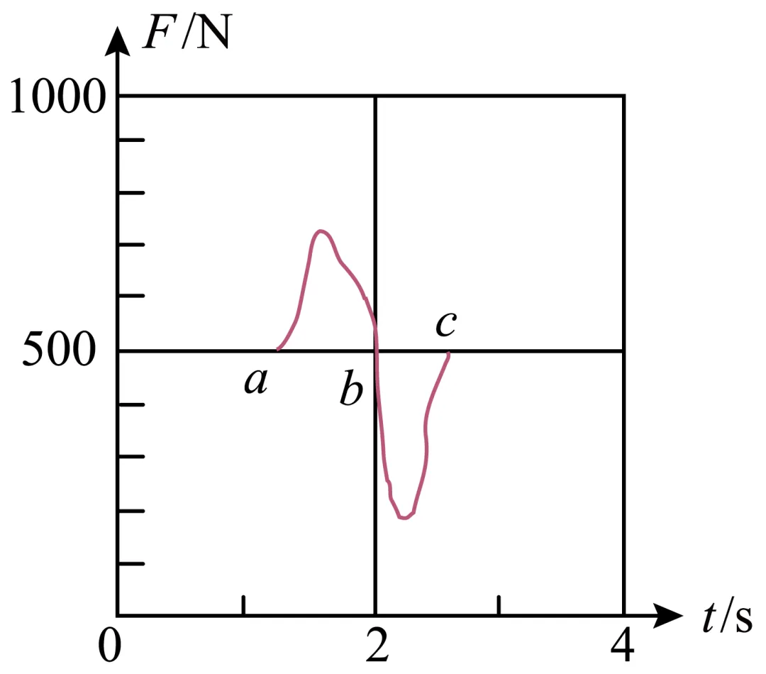 8. 为了研究超重和失重现象,某同学站在力传感器上做“下蹲”和“站起”的动作,力传感器将采集到的数据输入计算机,可以绘制出压力随时间变化的图线。某次实验获得的图线如图所示,a、b、c为图线上的三个点,下列说法正确的是( )