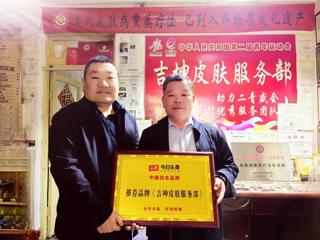 (韩丽军 沐悦)正值2026年新春佳节即将到来之际,在山西省太原市双塔西街青年路南口的吉坤皮肤服务部门前格外热闹。一块崭新的牌匾——“中国民生品牌推荐品牌”在阳光下熠熠生辉,见证着这个扎根社区多年的皮肤健康守护者获得的行业认可。